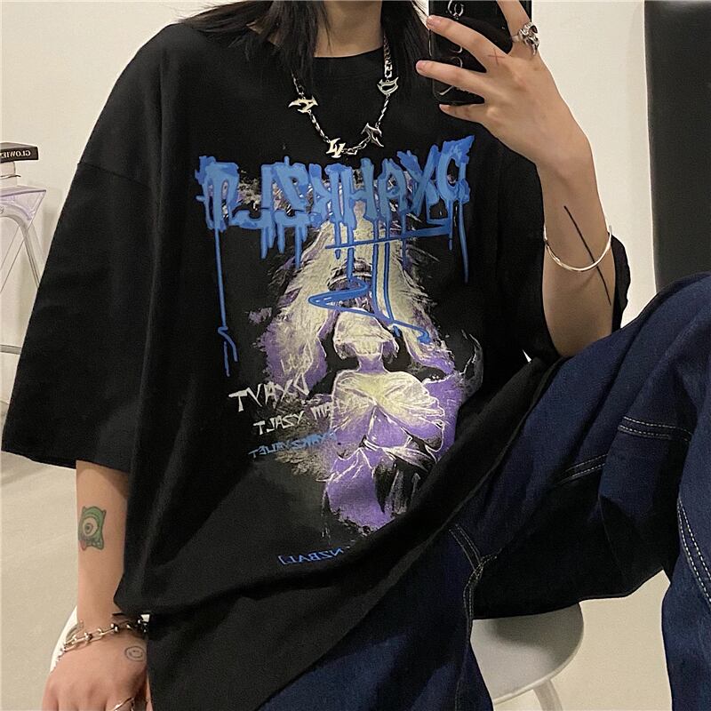 サマーブラックトップス ルーズTシャツ ストリート 夏物 ヨーロピアン Brother_is_Style23634686803