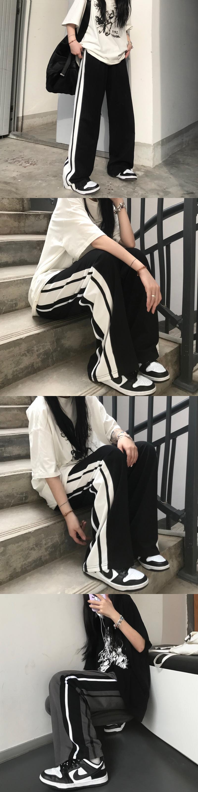 パンツ サマースタンダードストライプルーズブラックカジュアル レトロ 夏物 ステッチ Brother_is_Style71394465167