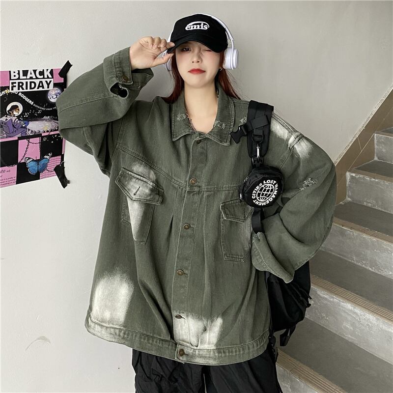 オータムジャケット ルーズグリーントップス ロング 秋物 Brother_is_Style19146794436