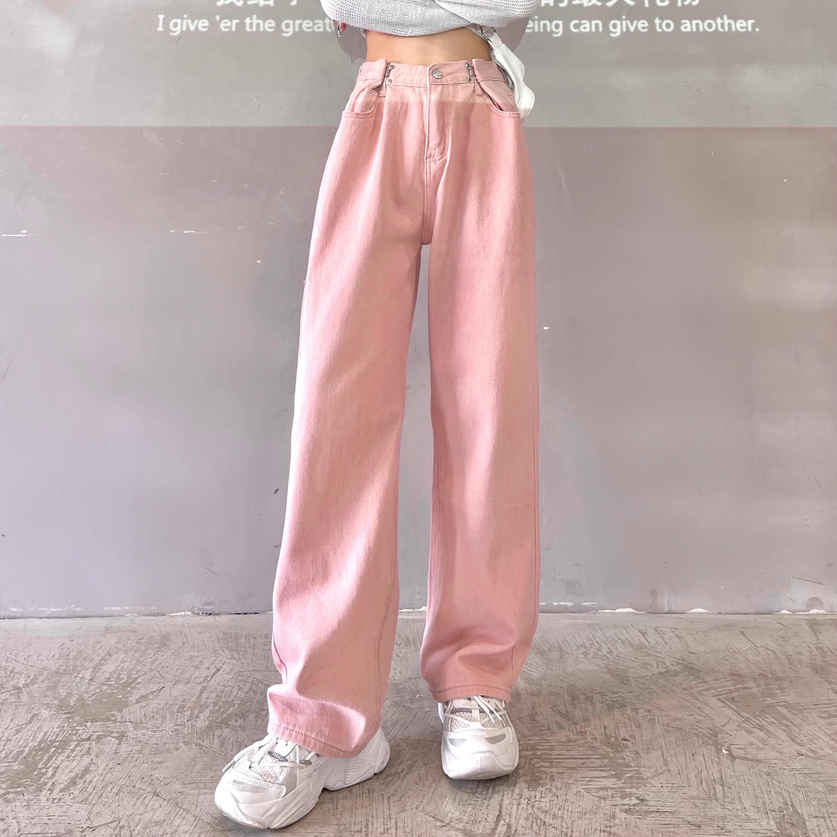 パンツ サマースタンダードルーズ薄手ワイドレッグハイウェストウェストジーンズ ピンク レトロ 夏物 ワイドパンツ Brother_is_Style13012821263