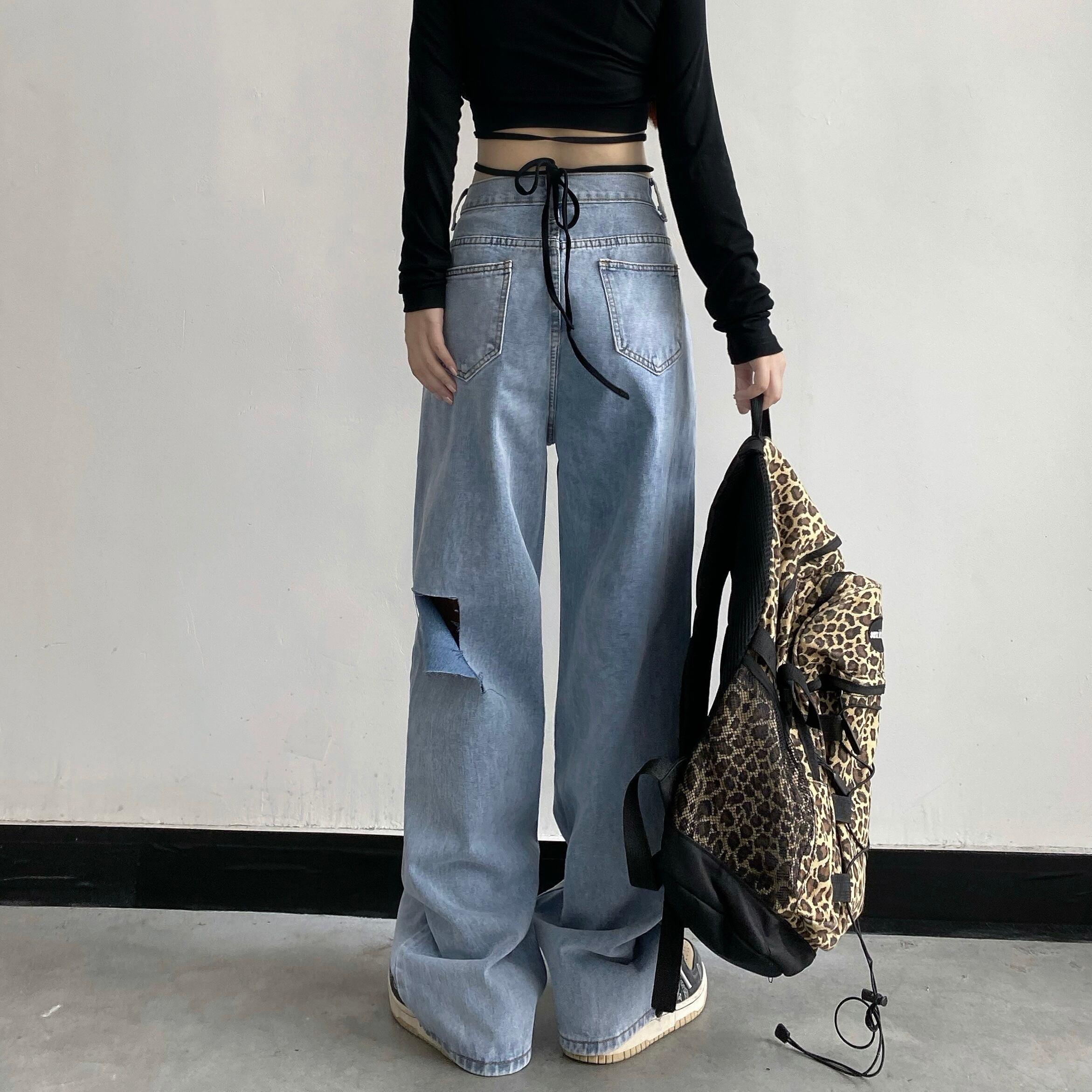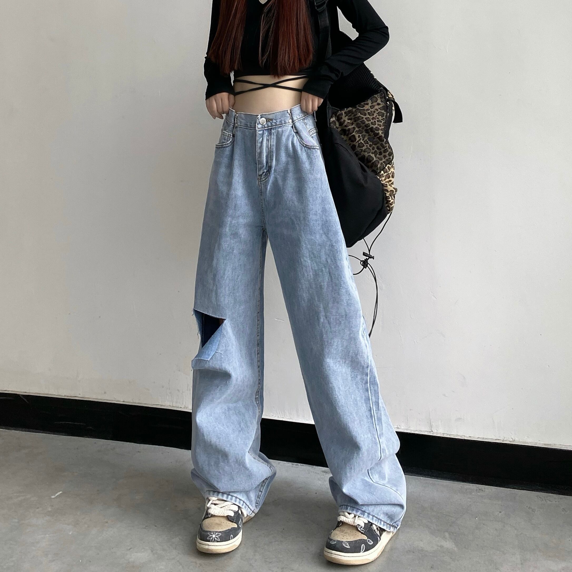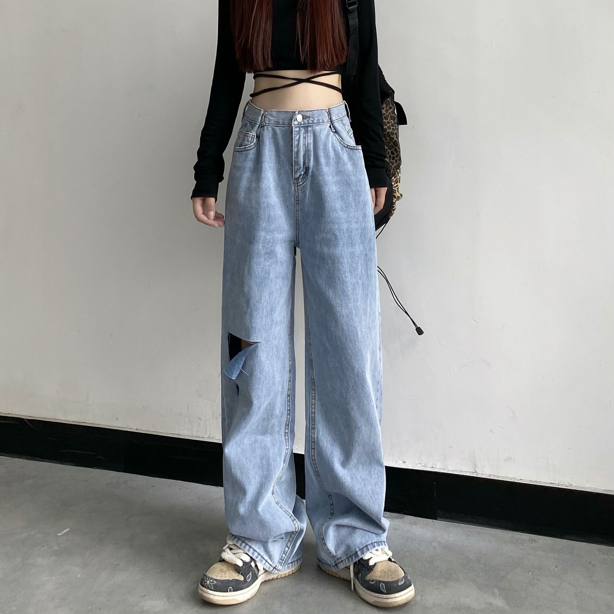 パンツ サマースタンダードハイウェストウェストルーズ薄手ワイドレッグブルージーンズ レトロ 夏物 ワイドパンツ Brother_is_Style62131111742