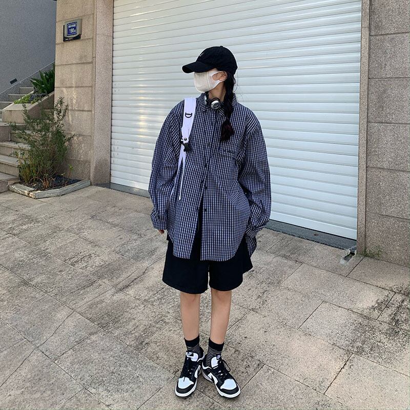 サマースタンダード格子柄シャツ ジャケット ルーズ ロング レトロ 夏物 Brother_is_Style85275187395