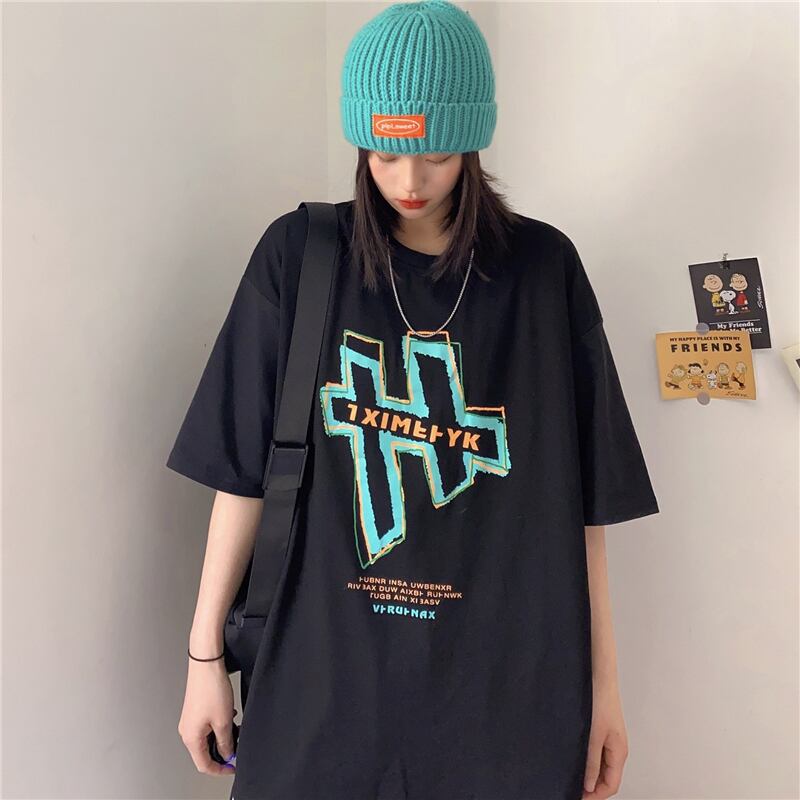 サマープリントトップス ブラックルーズスタイルTシャツ かわいい 夏物 Brother_is_Style50563160209