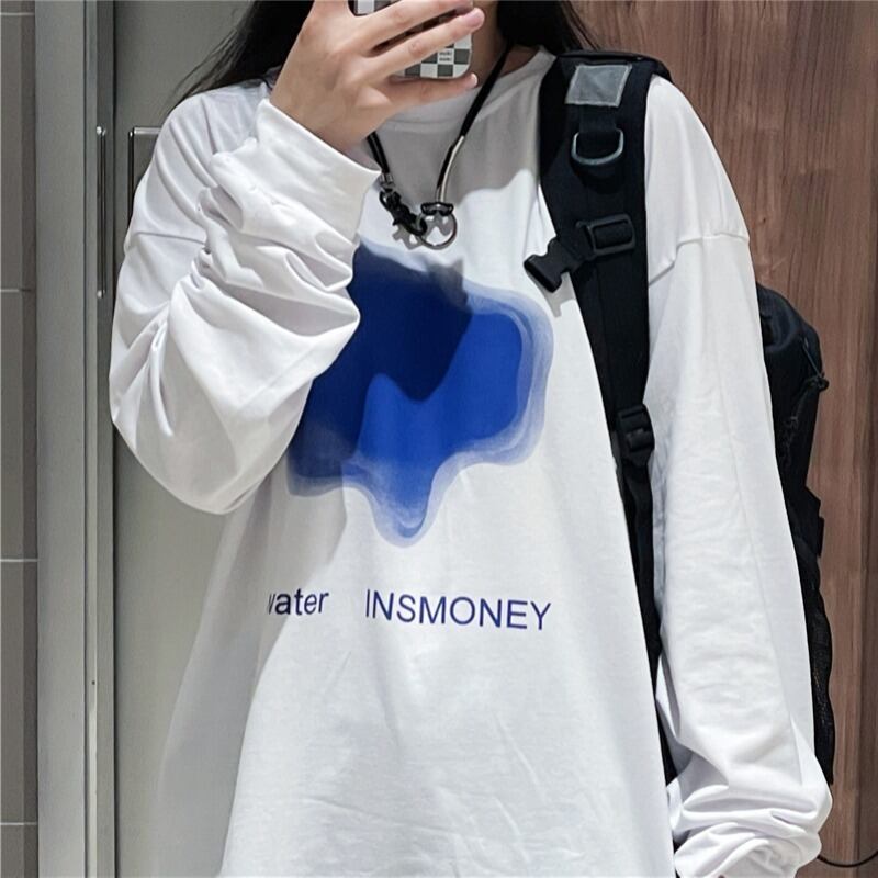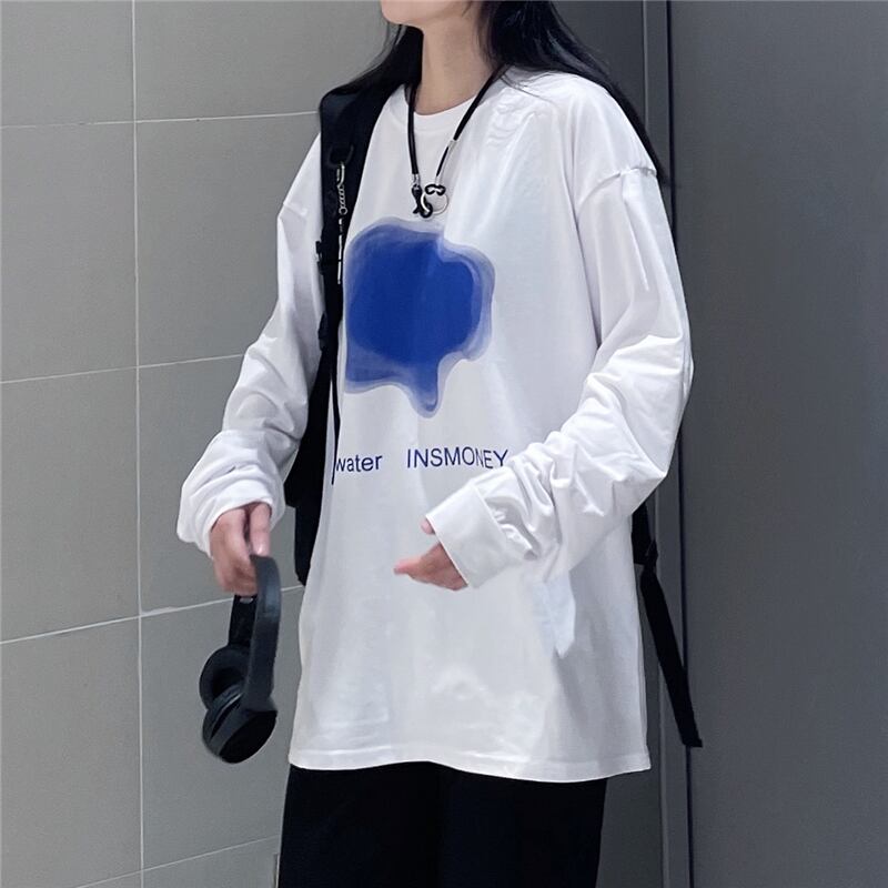 サマースタンダードプリントシャツ ルーズホワイトTシャツ ロング レトロ 夏物 Brother_is_Style56022528095