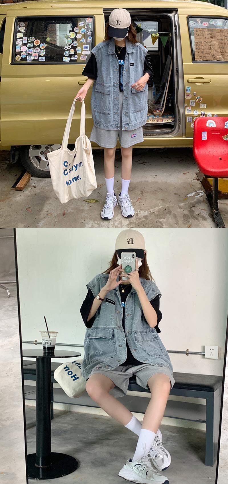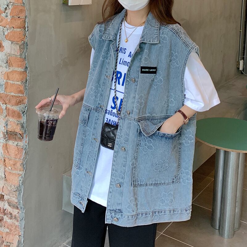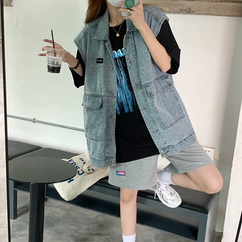 サマースタンダードトップス ルーズブルーノースリーブジャケット レトロ 夏物 Brother_is_Style12092226399