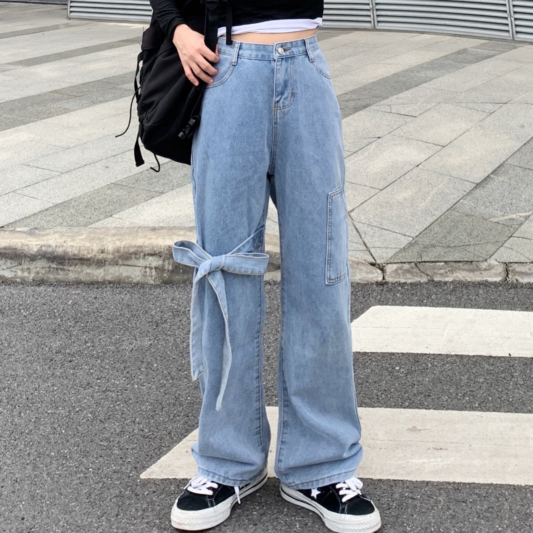 パンツ サマースタンダード薄手ジーンズ ルーズハイウェストウェストワイドレッグ レトロ 夏物 ワイドパンツ Brother_is_Style36623474907