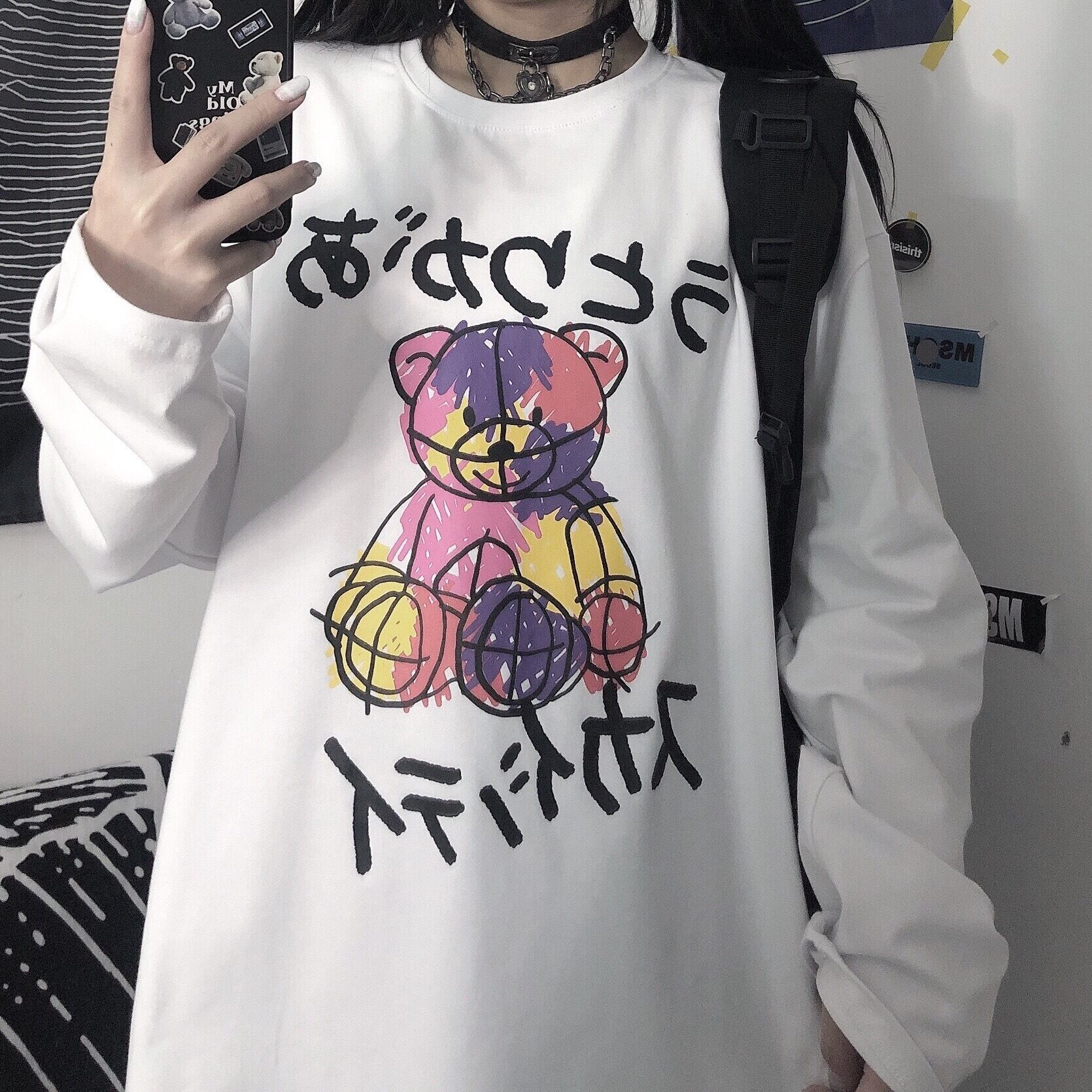 オータムホワイトシャツ ルーズTシャツ ロング ストリート 秋物 Brother_is_Style66150081015