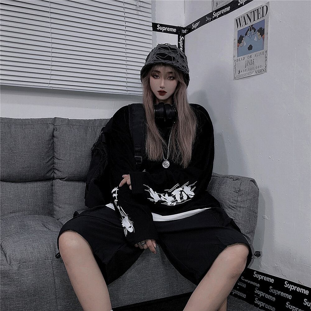 オータムダークブラックトップス ルーズTシャツ ロング 秋物 Brother_is_Style62540059876