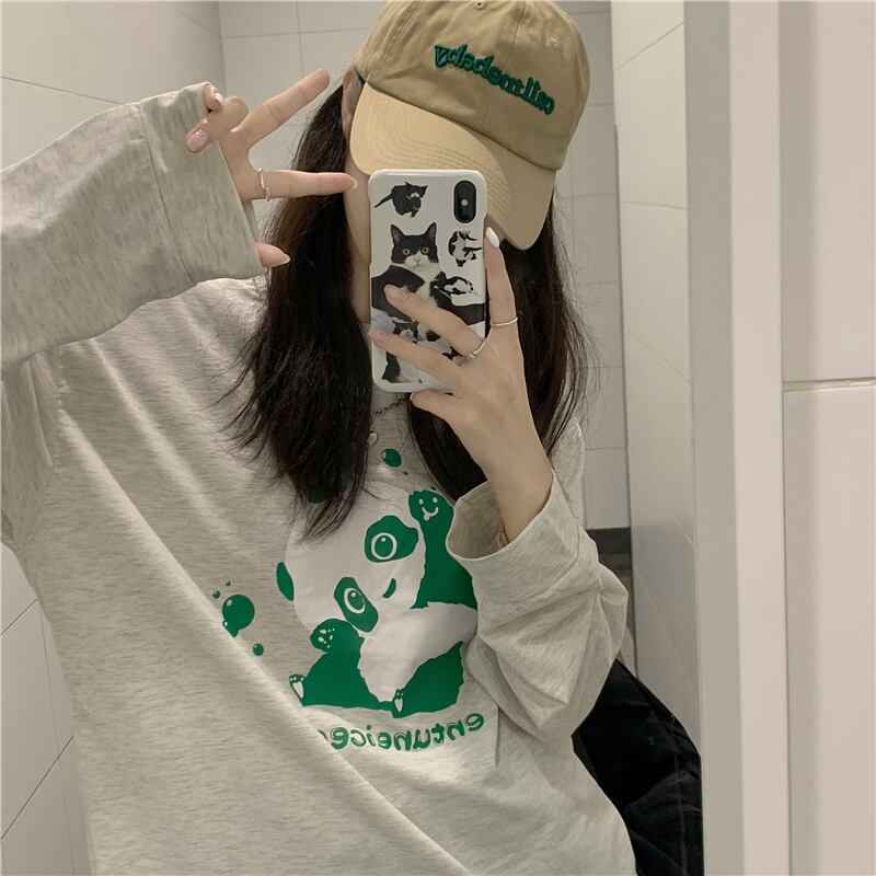 オータムスタンダードトップス ルーズラウンドネック長袖スリーブTシャツ ロング レトロ 大人ガーリー スウィート キュート カジュアル 秋物 Oネック Brother_is_Style85441213149