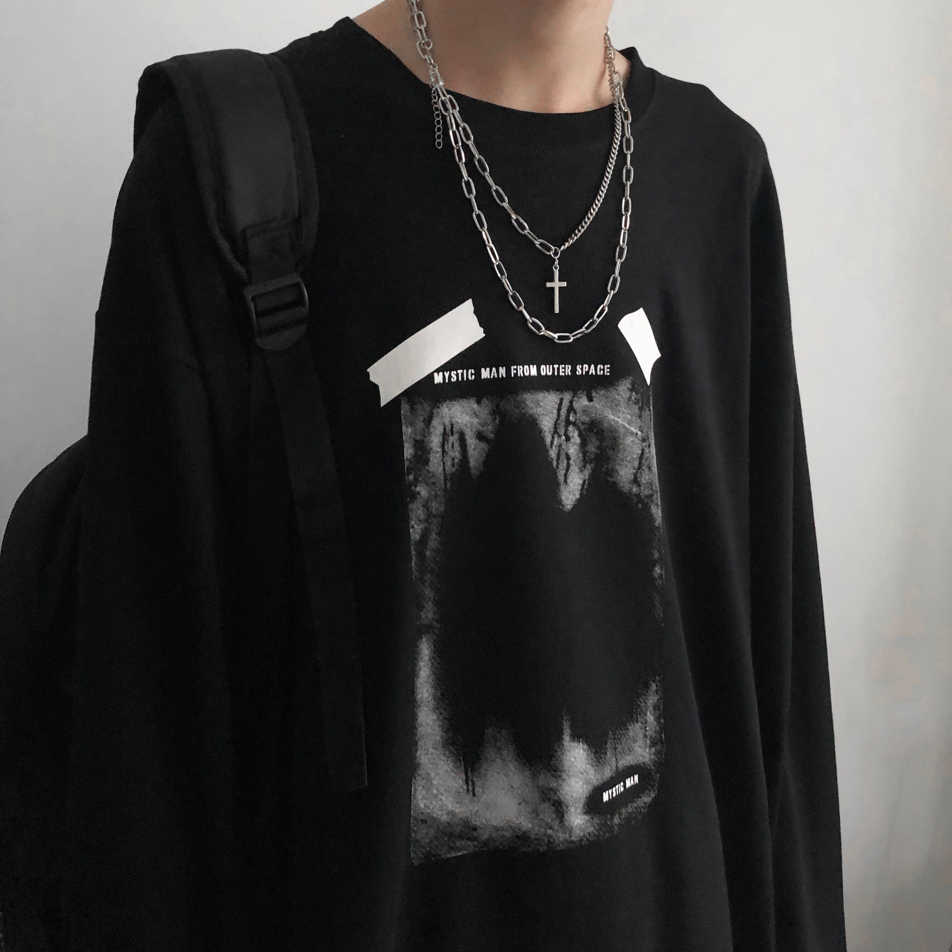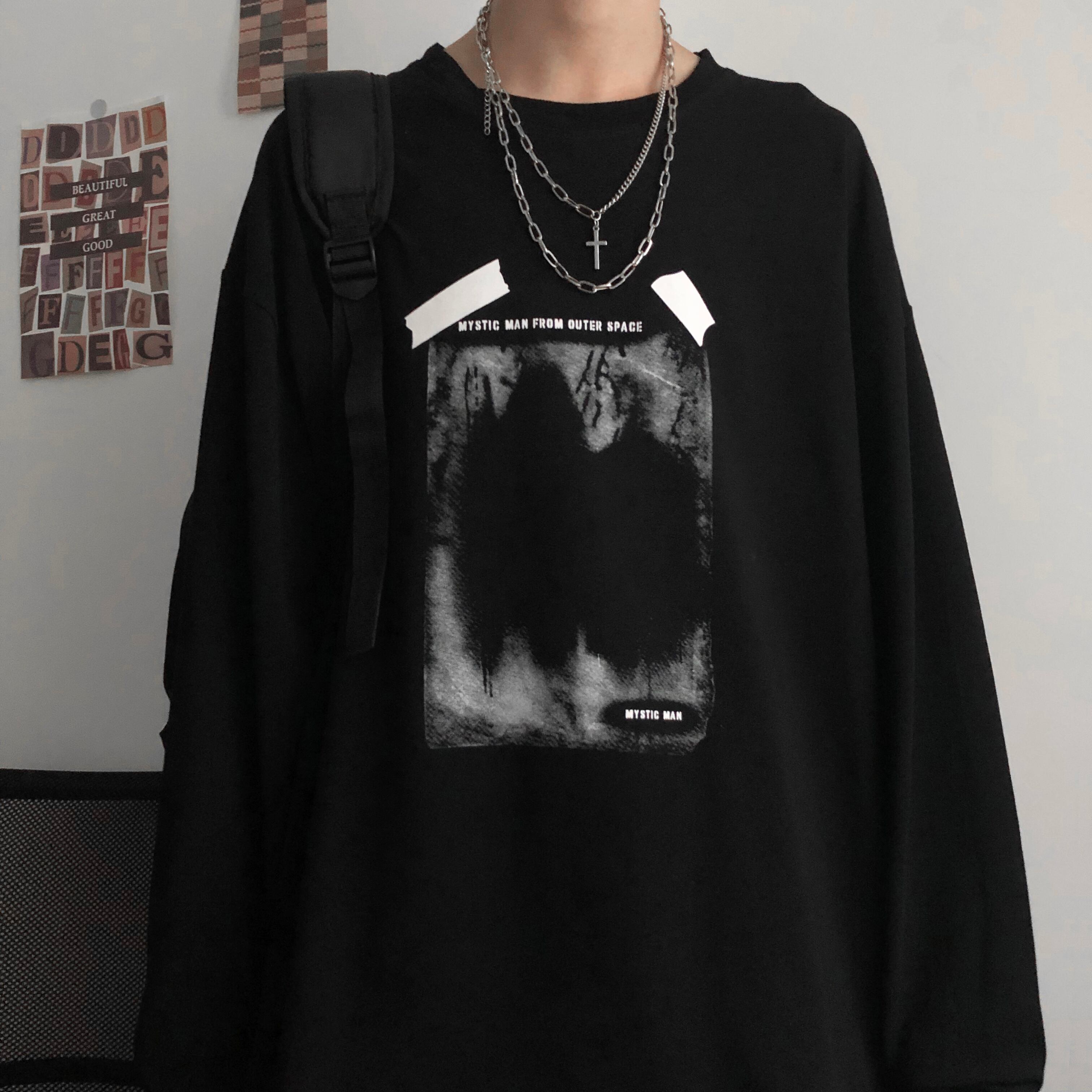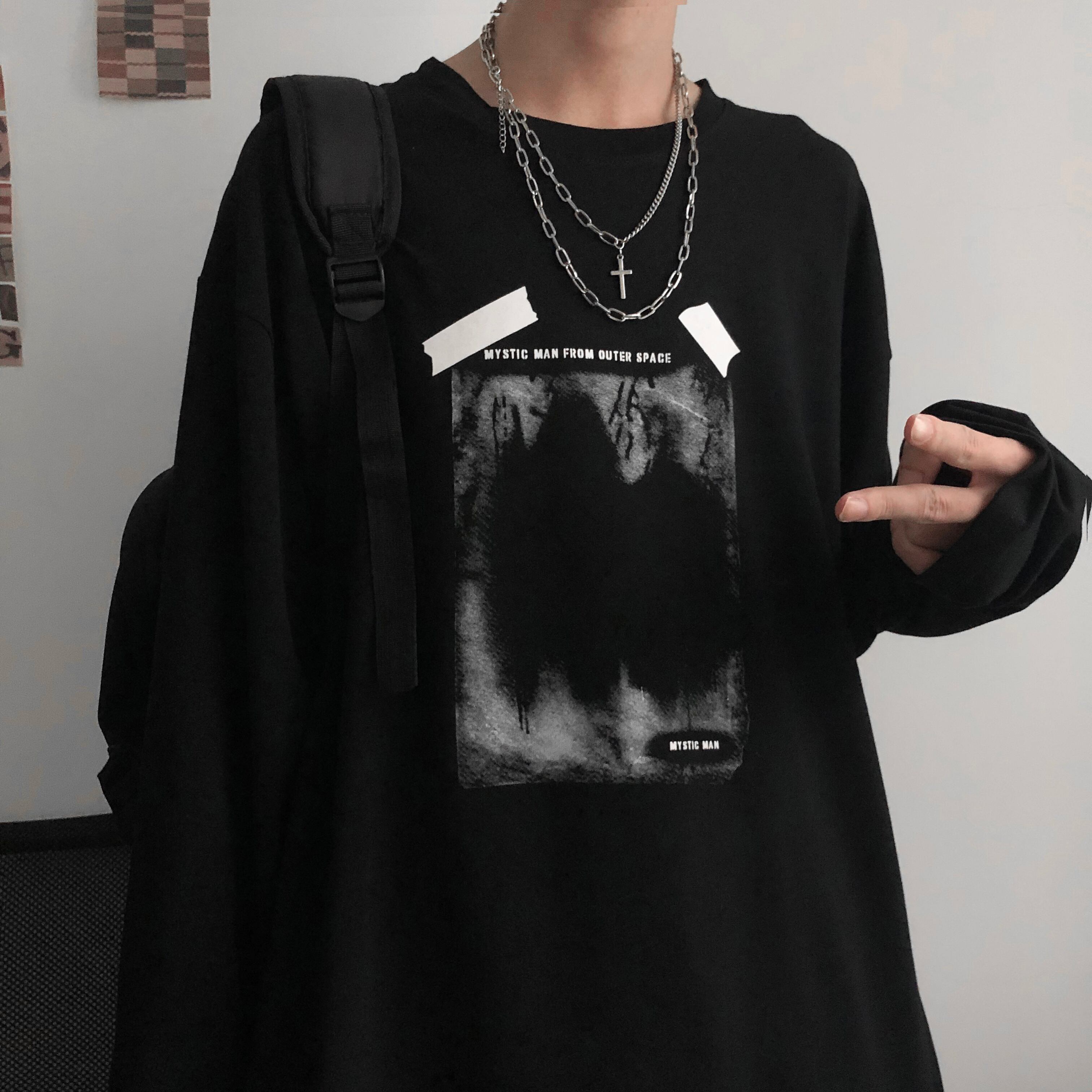 オータムダークシャツ トップス ルーズブラックTシャツ レディース ロング ストリート 秋物 Brother_is_Style47615575605