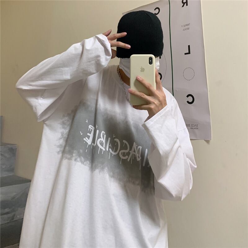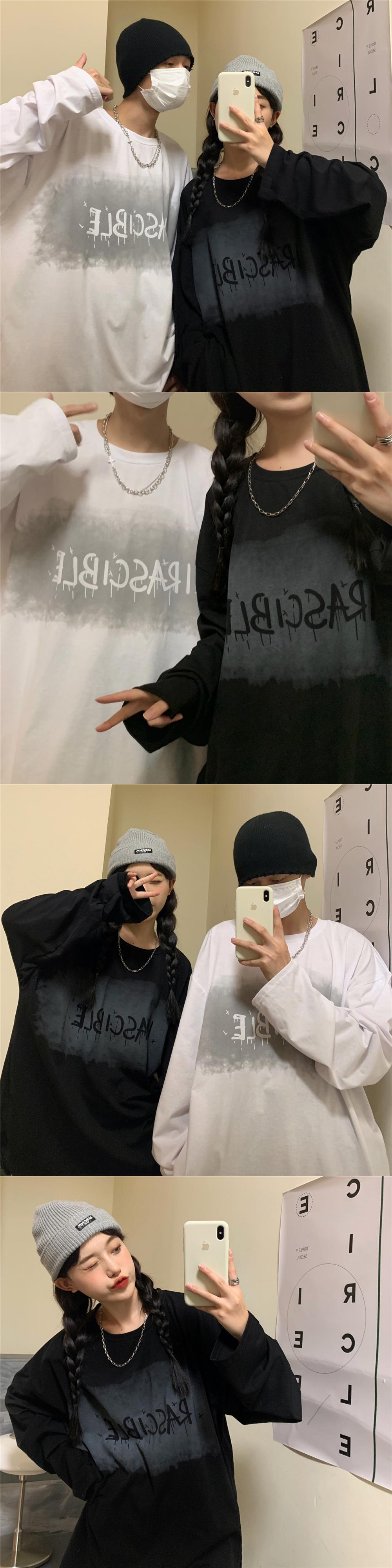 オータムブラックプリントシャツ トップス ルーズTシャツ ロング ストリート 秋物 Brother_is_Style11163016110