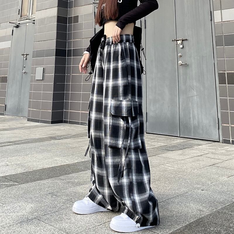 パンツ オータムブラック格子柄ルーズ薄手カジュアル ストリート 秋物 Brother_is_Style29906885217