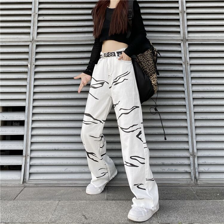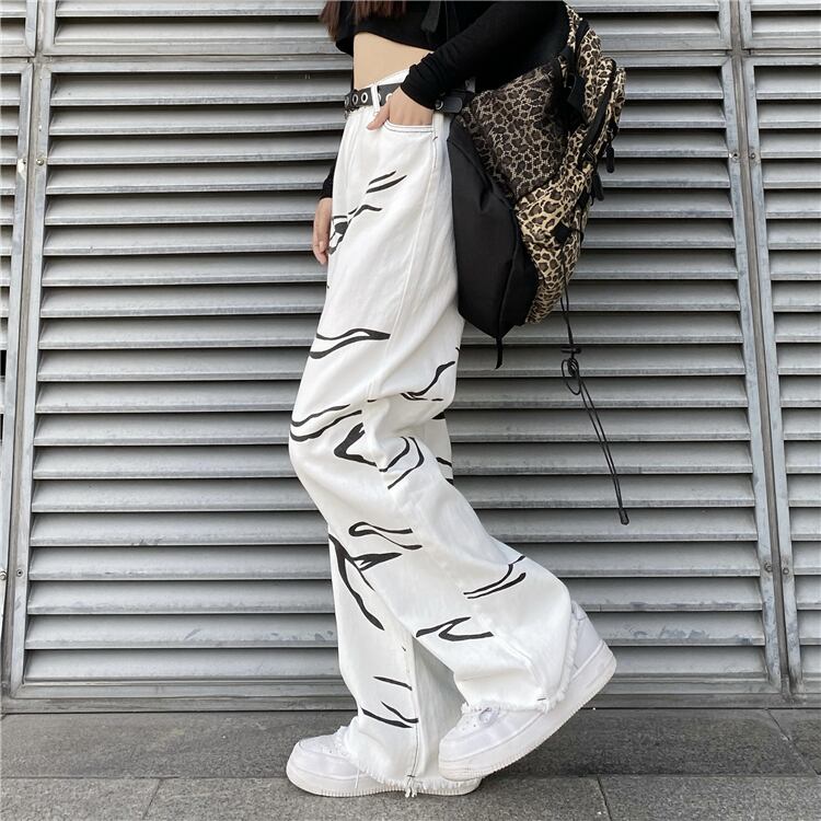オータムスタンダードホワイトパターンルーズ薄手パンツ ジーンズ レトロ 秋物 Brother_is_Style55146351152