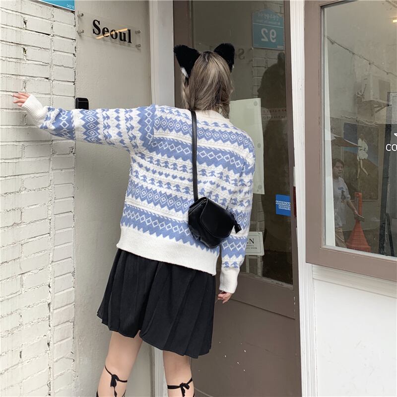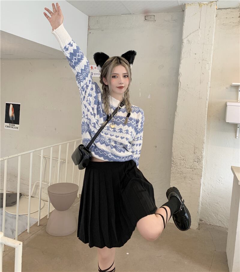オータムブルーセーター コート ルーズプルオーバー トップス レディース ロング 秋物 Brother_is_Style43946464772