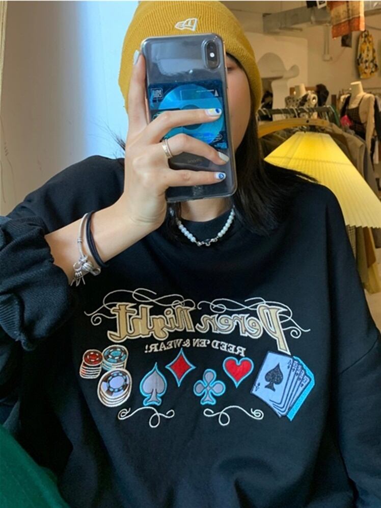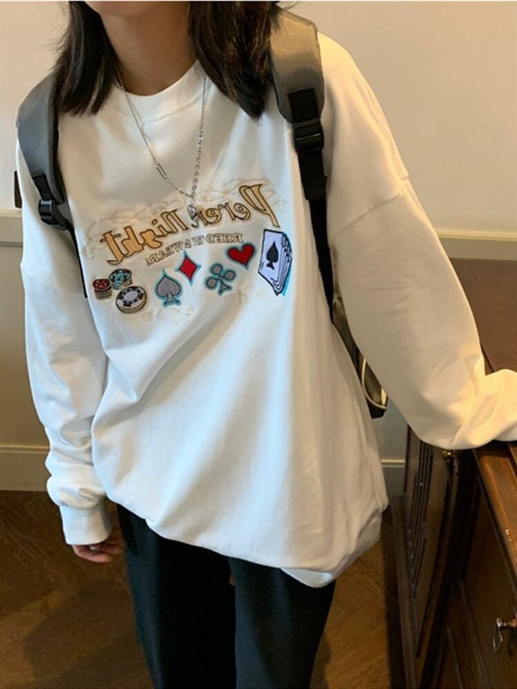 オータムスタンダード刺繍ラウンドネックプルオーバー セーター ルーズホワイトトップス コート ロング レトロ 秋物 Oネック Brother_is_Style90835952986