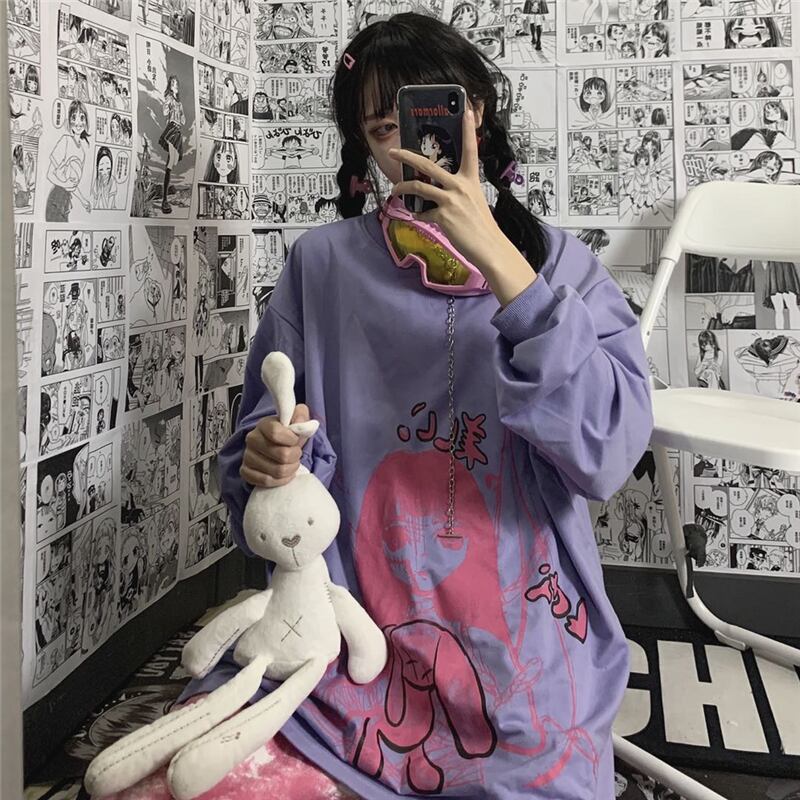 オータムダークプルオーバー ブラウス ルーズホワイトセーター レディース ロング 秋物 Brother_is_Style17806597091