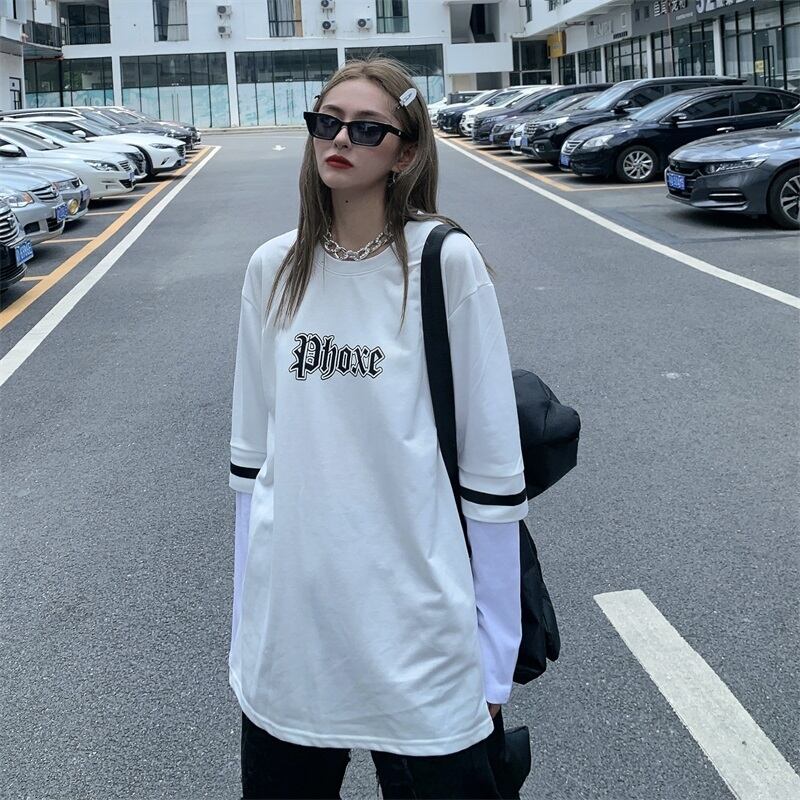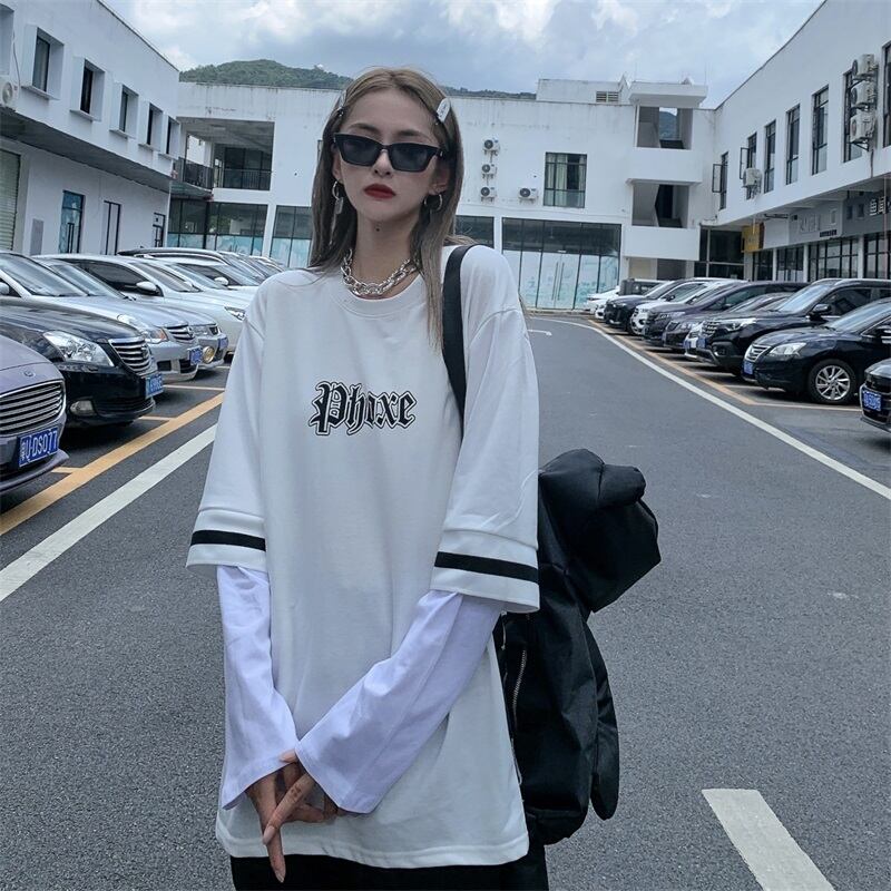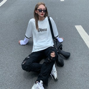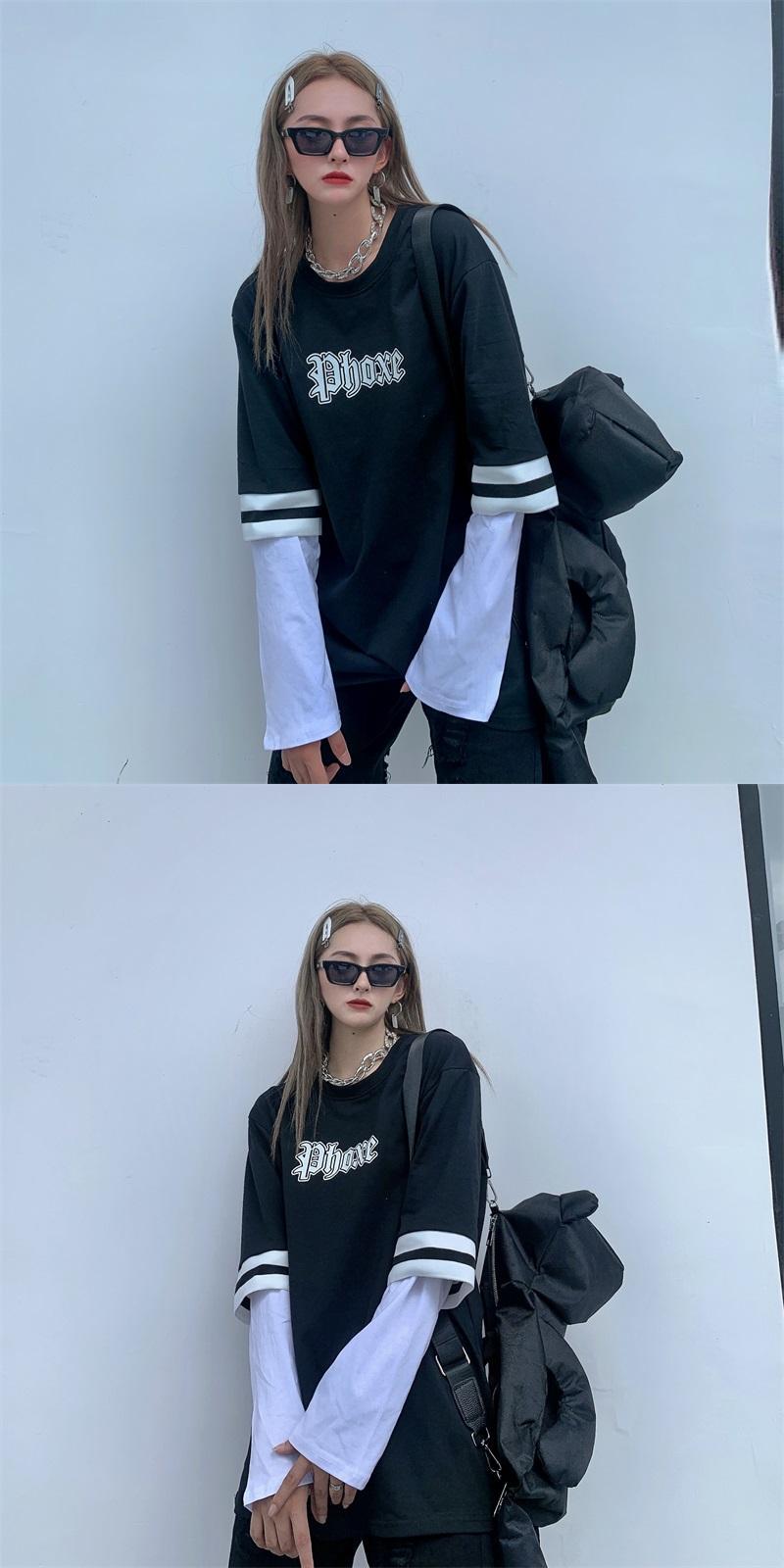 オータムプリントルーズホワイトTシャツ トップス ロング ストリート 秋物 Brother_is_Style86881719298