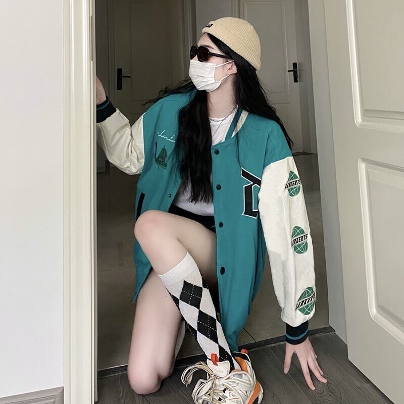 オータムスタンダード刺繍トップス ルーズグリーンジャケット ロング レトロ 秋物 Brother_is_Style46196291326