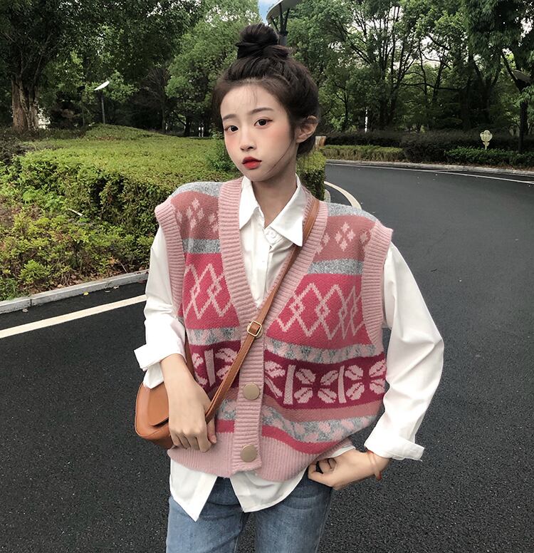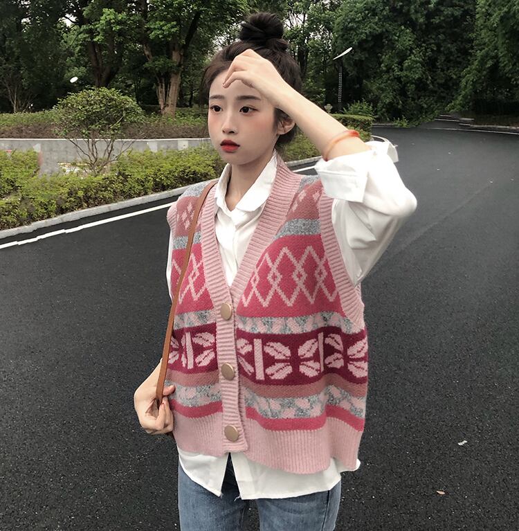 セーター オータムノースリーブコート ルーズシャツ トップス ロング ピンク 秋物 Brother_is_Style82674659344