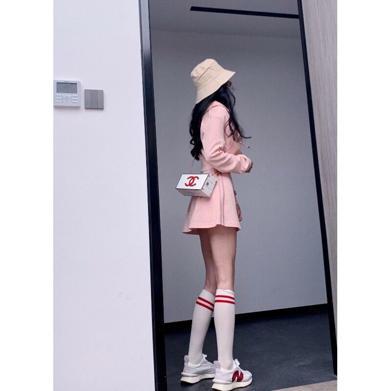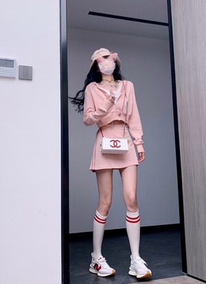 レディースオータムショートセーター ジャケット ハイウェストウェストスカート ロング ピンク 秋物 Brother_is_Style89020725379