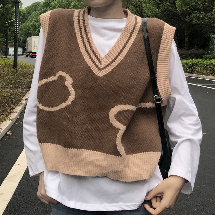色:ミルクコーヒークマのセーター,暖かい黄色のクマのセーター,白い長袖tシャツ