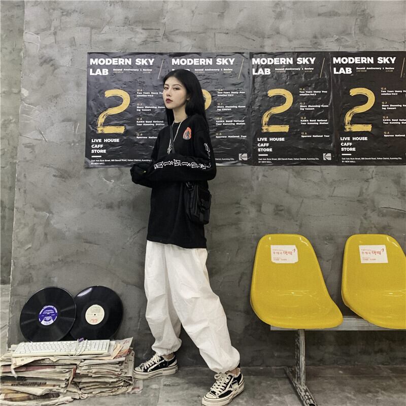 オータムプリントブラックトップス ルーズセーター コート ロング 秋物 Brother_is_Style49905804907