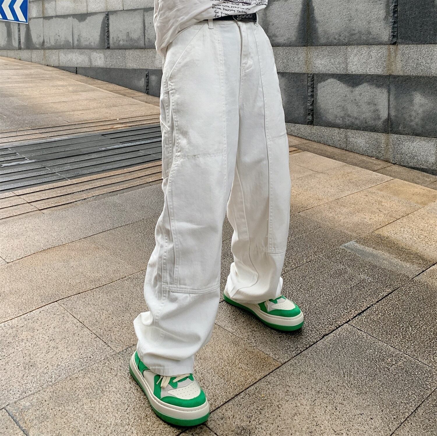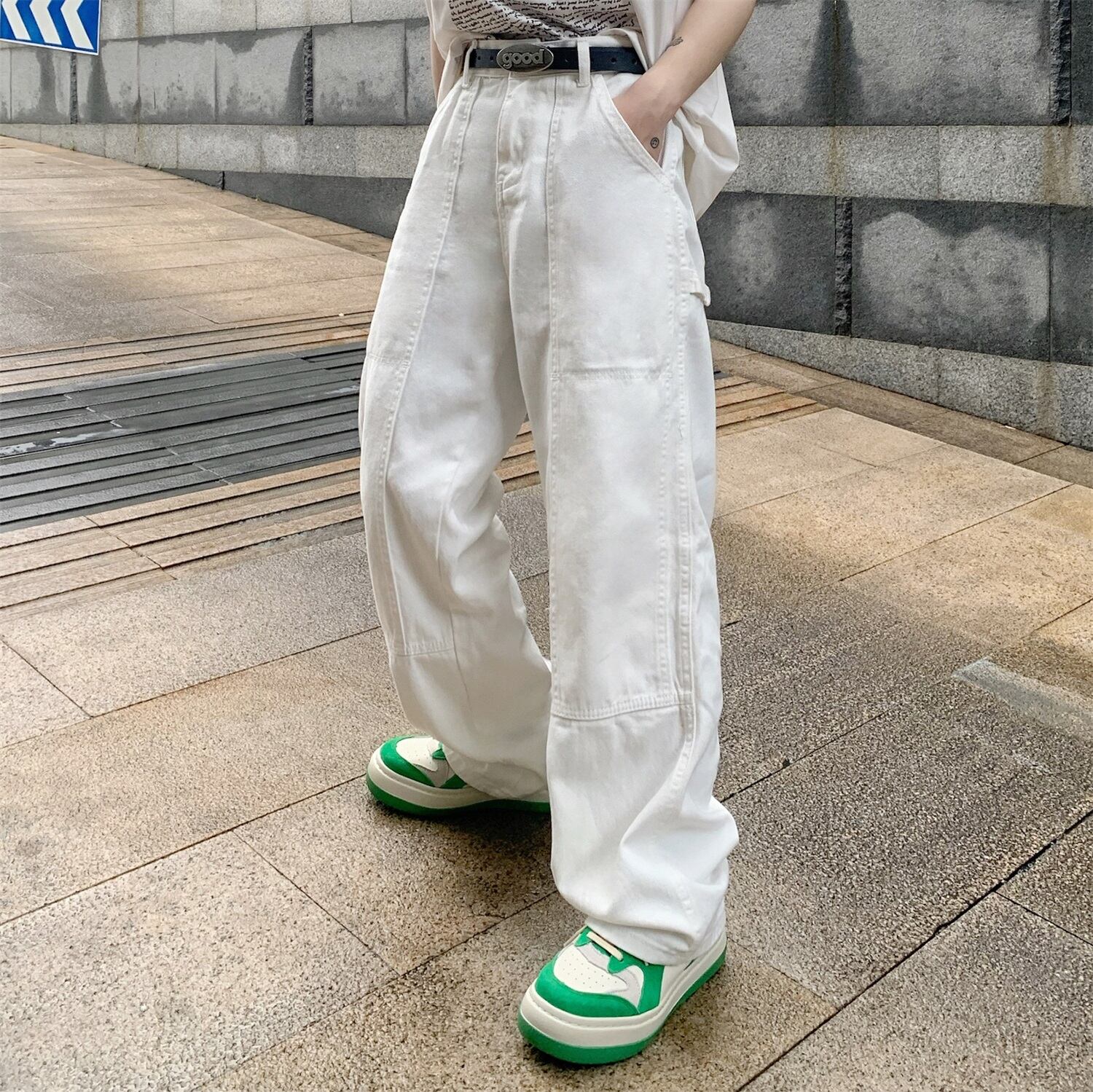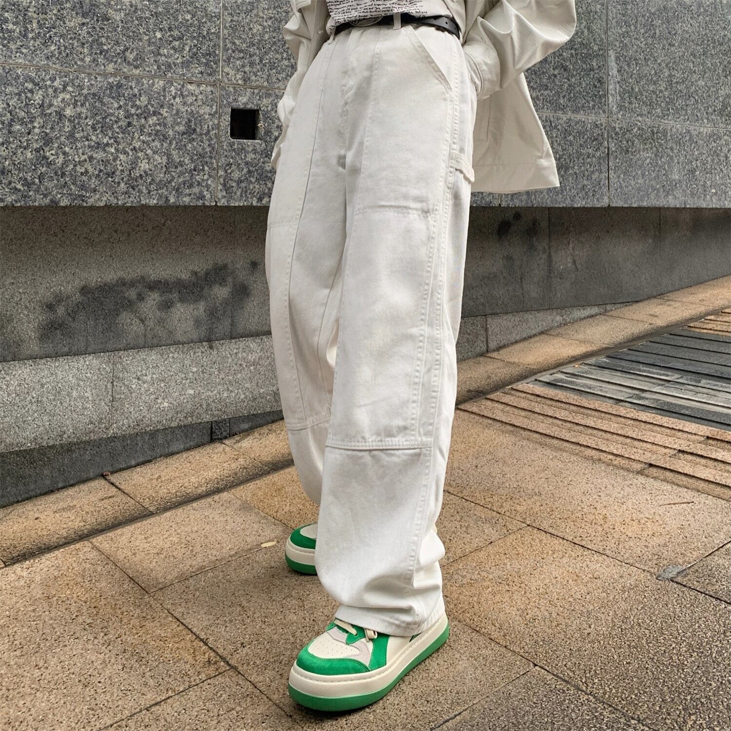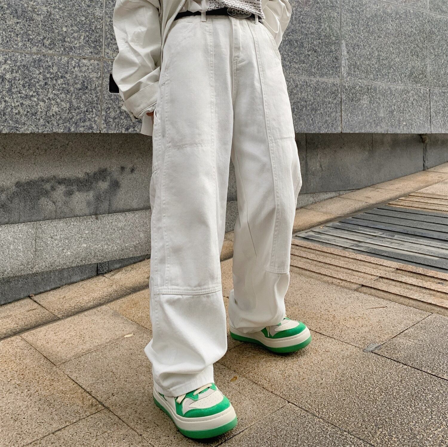 パンツ オータムスタイルホワイトルーズ薄手ワイドレッグハイウェストウェストジーンズ 秋物 ワイドパンツ Brother_is_Style14683564940