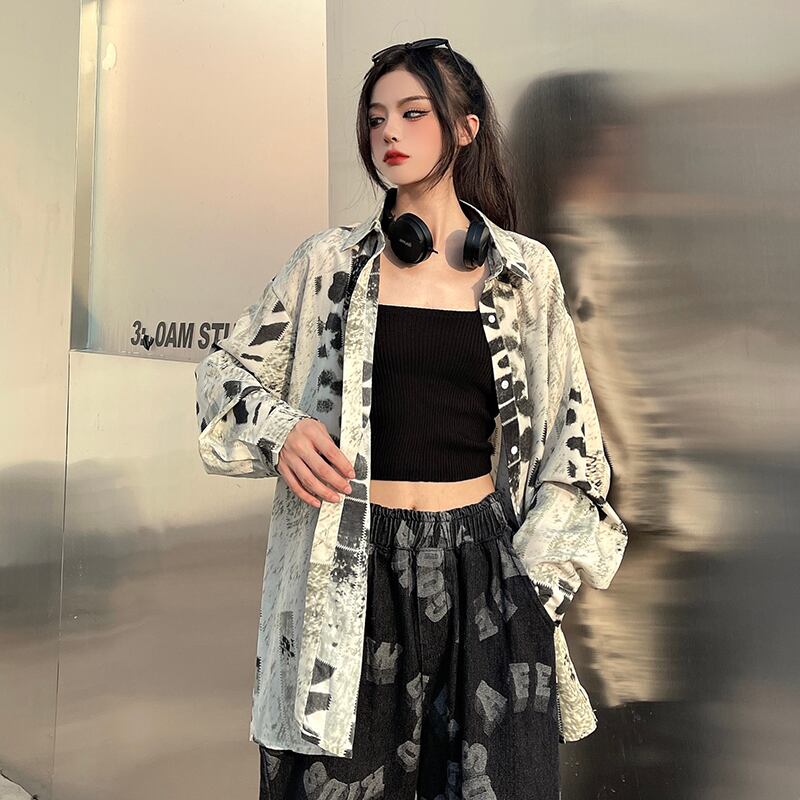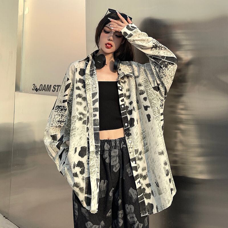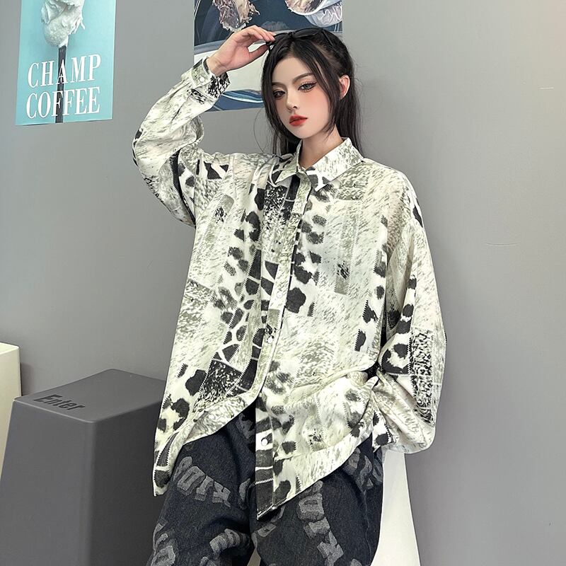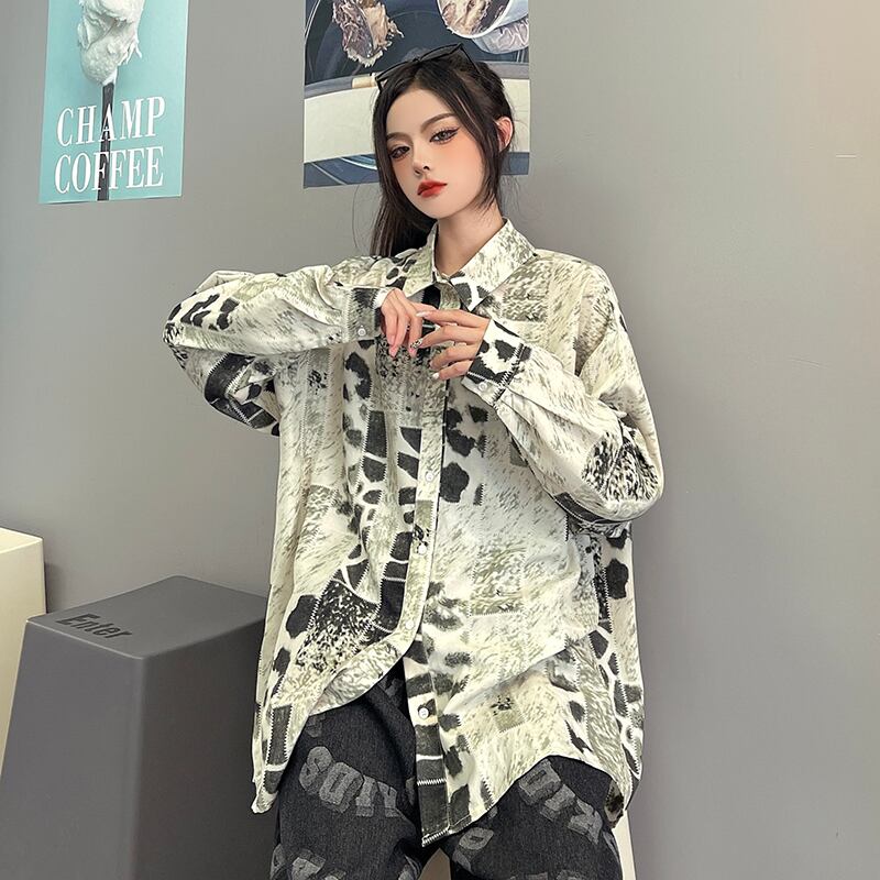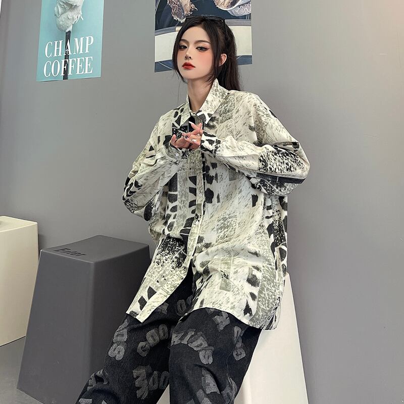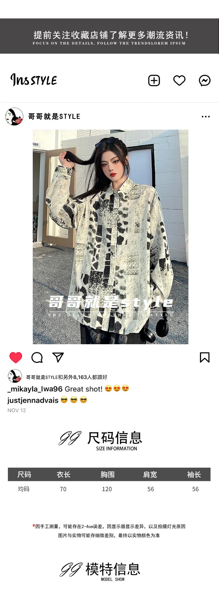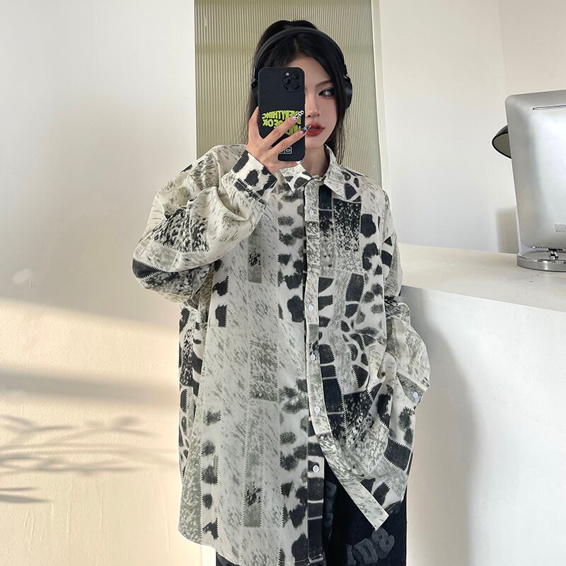 オータムスタンダードプリントシャツ ジャケット ルーズトップス ロング レトロ 秋物 Brother_is_Style24875804195