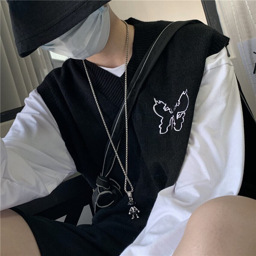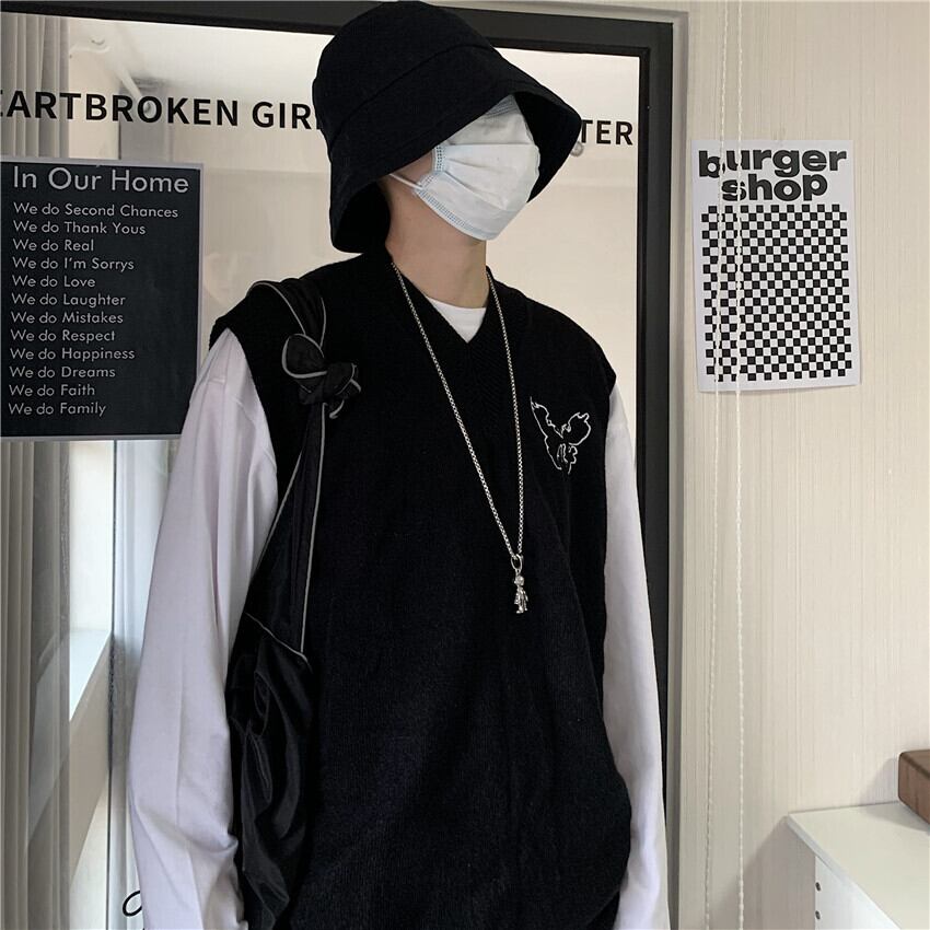 オータムスタンダードノースリーブニットトップス ルーズブラックジャケット レトロ 秋物 Brother_is_Style22351328931