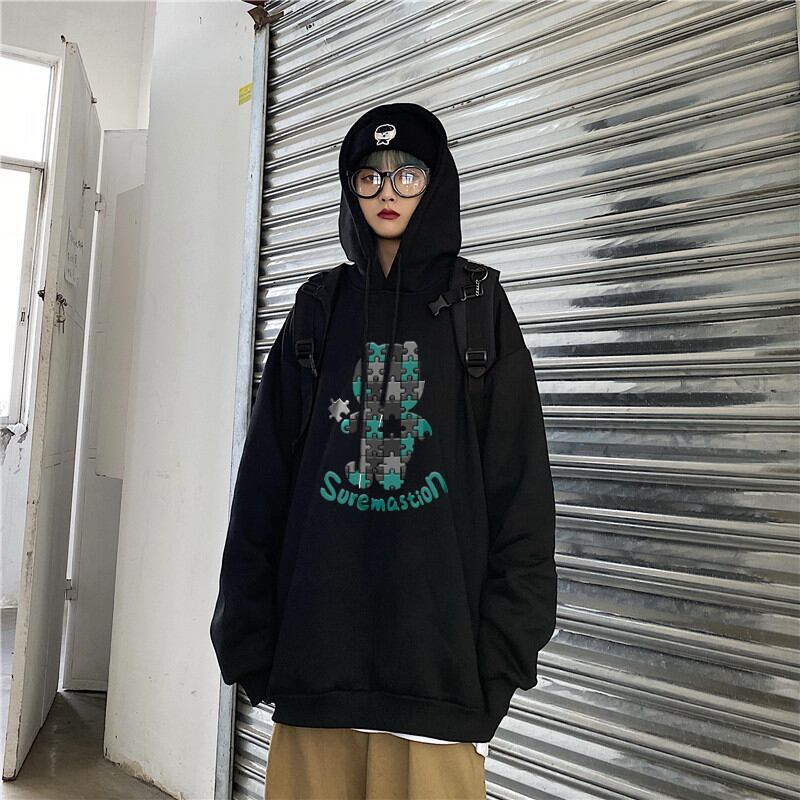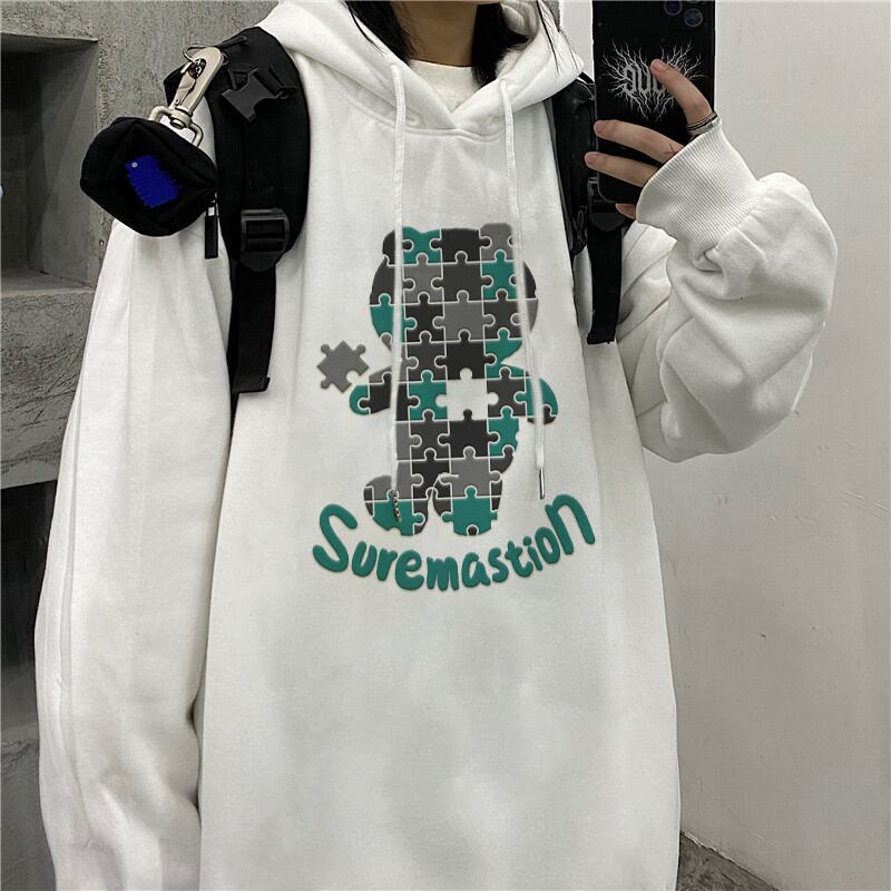 オータムスタンダードプリントホワイトセーター コート ルーズフードトップス レディース ロング レトロ 秋物 Brother_is_Style52097739985