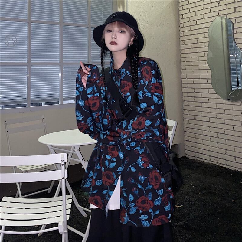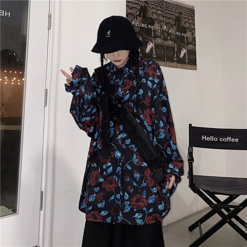 オータムスタンダードフローラルシャツ ジャケット ルーズ ロング レトロ 秋物 花柄 Brother_is_Style41006010324