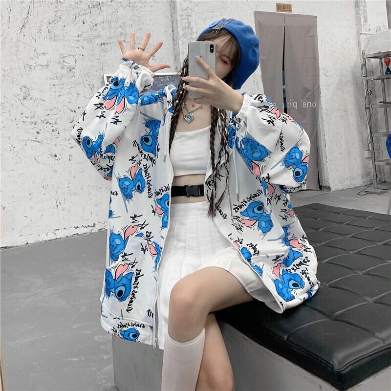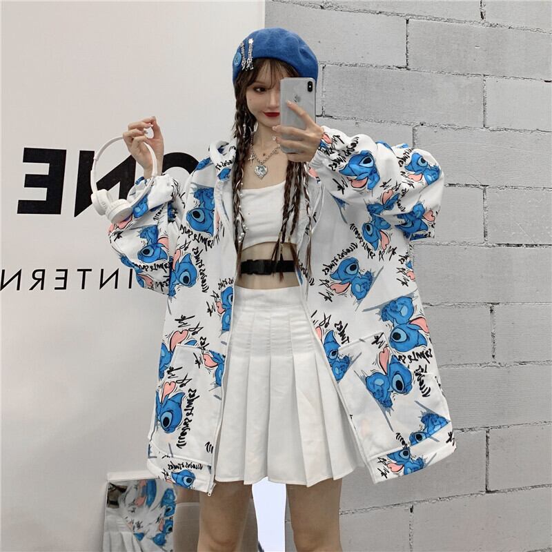 オータムスタンダードプリントフードセーター ジャケット ブラックルーズトップス ロング レトロ 秋物 Brother_is_Style55911033011