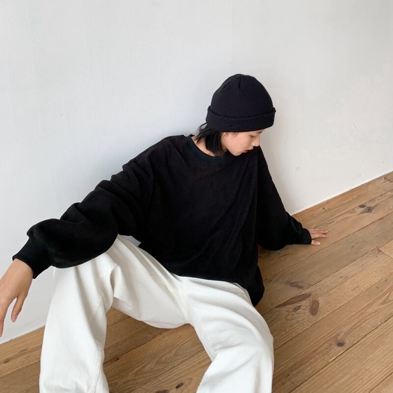 オータムスタンダードプルオーバー セーター ルーズベルベットトップス ロング レトロ 秋物 Brother_is_Style86866777885