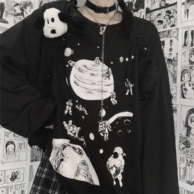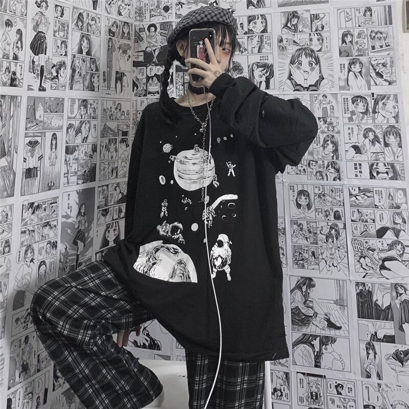 オータムスタンダードプルオーバー セーター ブラックルーズトップス ロング レトロ 大人ガーリー スウィート キュート カジュアル 秋物 Brother_is_Style28858287379