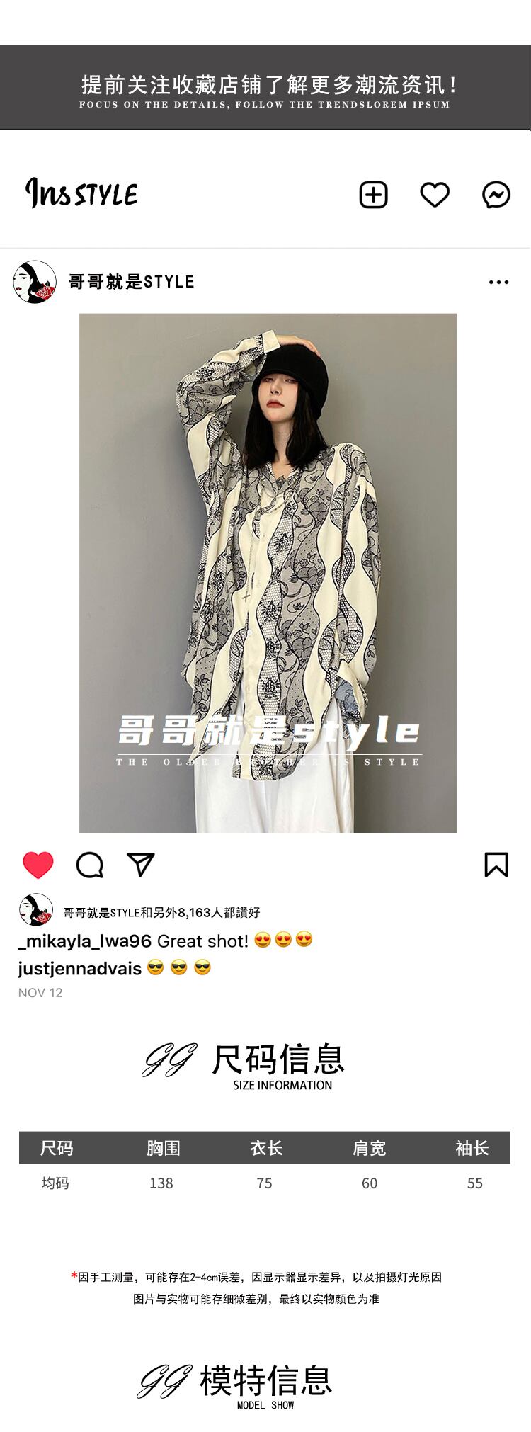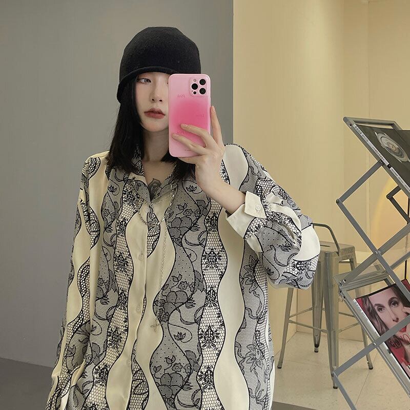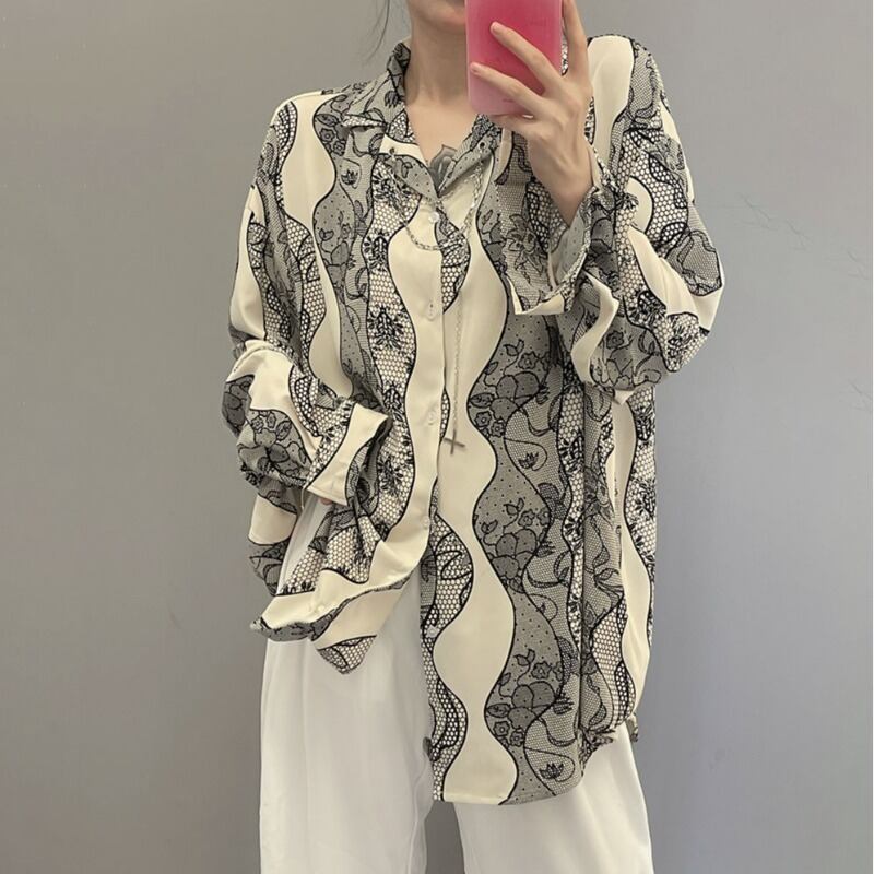 シャツ オータムスタンダードチェーン レースプリント柄ジャケット ルーズトップス ロング レトロ 秋物 Brother_is_Style28407020604