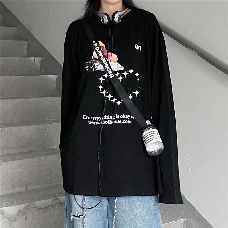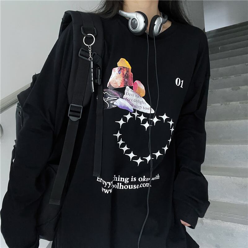 ホワイトTシャツ シャツ オータムプリントルーズラウンドネック ロング 秋物 Oネック Brother_is_Style95525757555