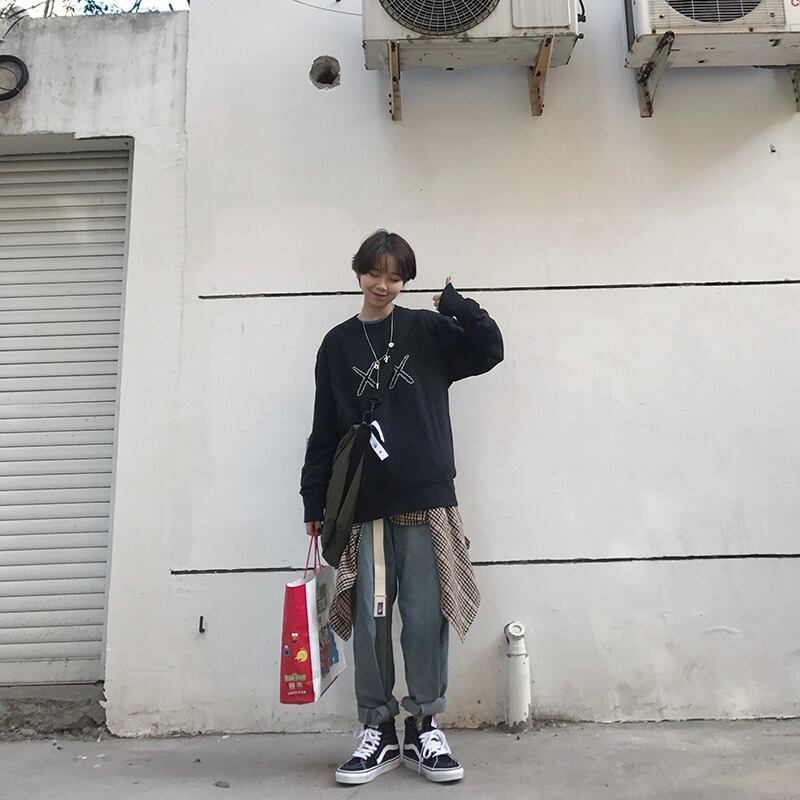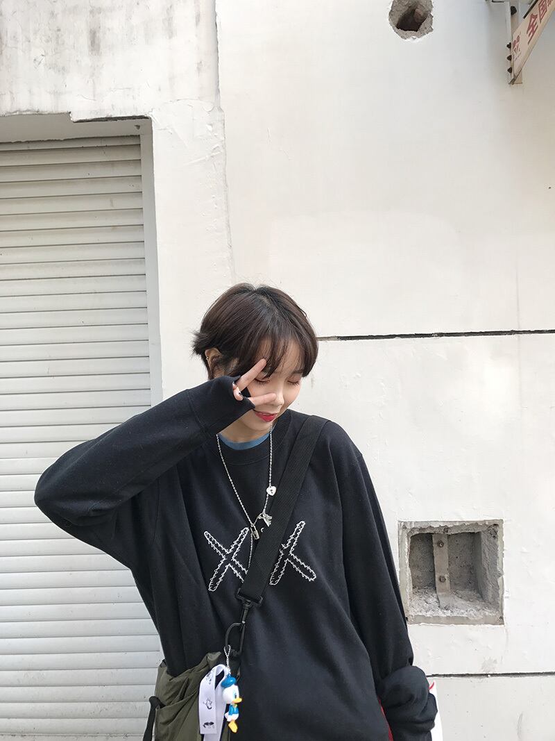 オータムブラックプルオーバー セーター コート ルーズトップス レディース ロング 秋物 Brother_is_Style39372670131
