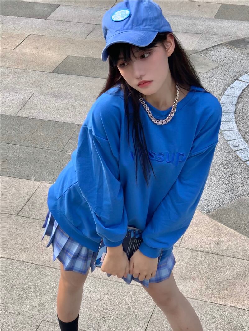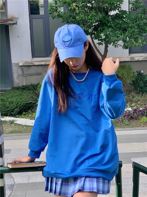 オータムスタンダード薄手プルオーバー セーター ブルールーズシャツ ロング レトロ 秋物 Brother_is_Style64670028980