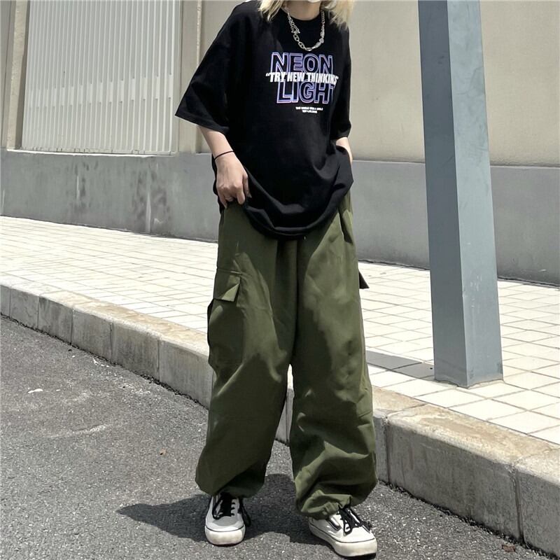 オータムスタイルブラックカジュアルパンツ ルーズハイウェストウェスト薄手 秋物 Brother_is_Style6329263653