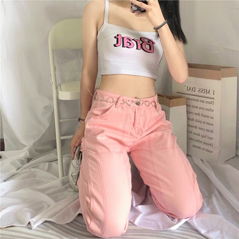 ジーンズ オータムスタンダードパンツ ルーズハイウェストスリム ピンク レトロ 秋物 Brother_is_Style33684778490