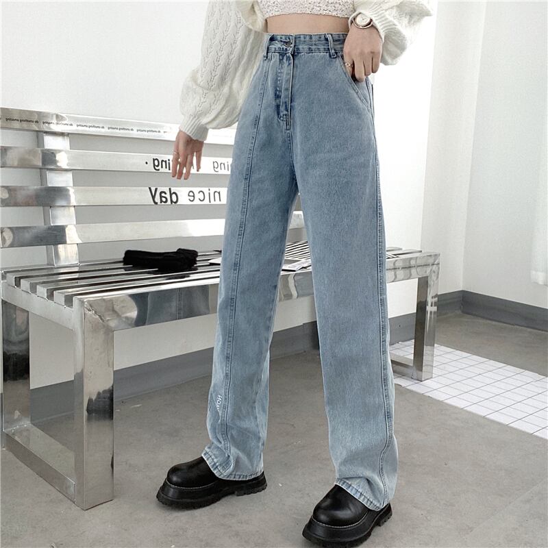 ジーンズ オータムスタイルハイウェストウェストワイドレッグルーズブルーパンツ かわいい 秋物 ワイドパンツ Brother_is_Style2885247523