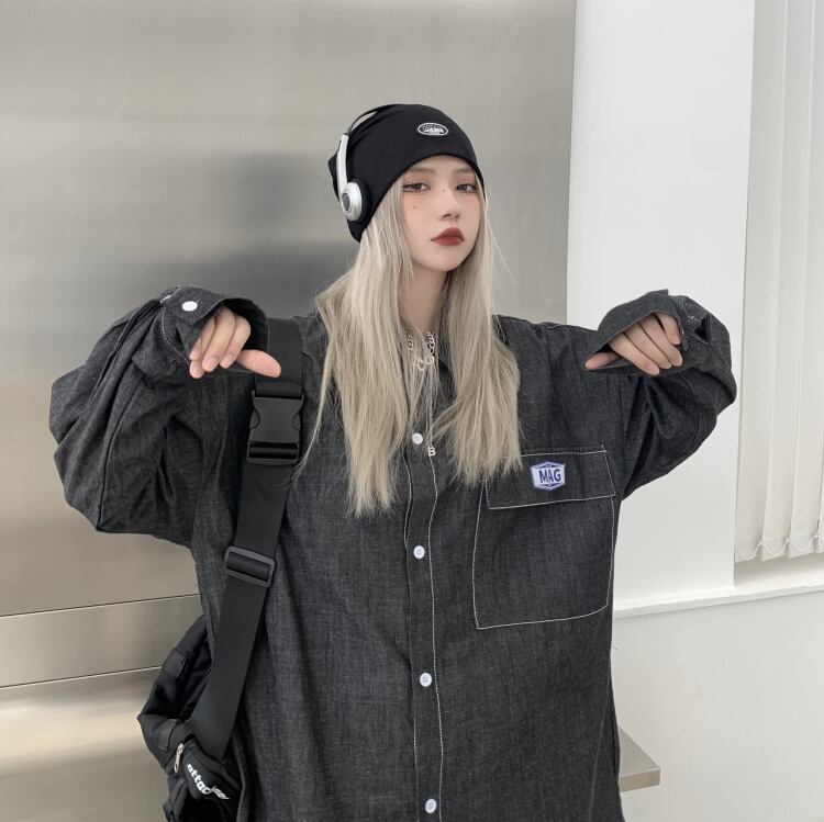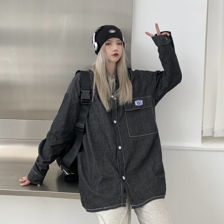 オータムスタンダードシャツ ジャケット ルーズカジュアルトップス レディース ロング レトロ 秋物 Brother_is_Style18599197096