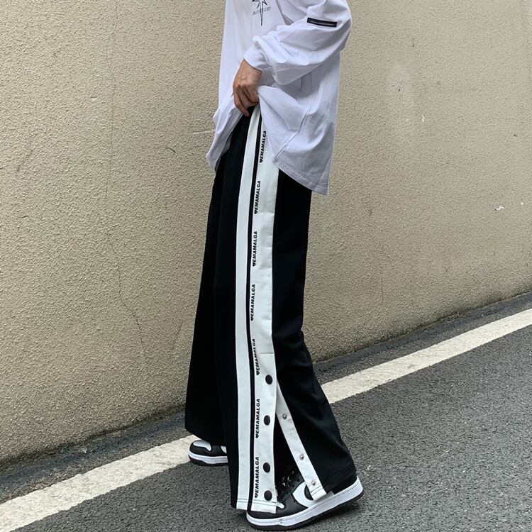 ブラックパンツ オータムプリントカジュアルルーズハイウェストウェストワイドレッグ ストリート 秋物 ワイドパンツ Brother_is_Style65604125374