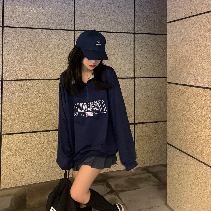 オータムスタンダード刺繍プルオーバー セーター ルーズカラートップス ロング レトロ 秋物 Brother_is_Style65176525326