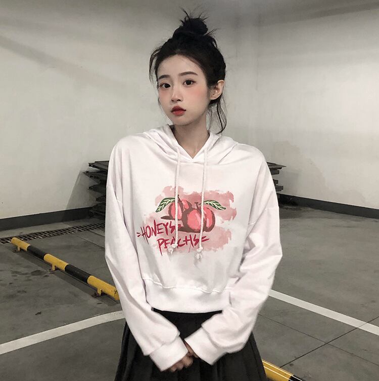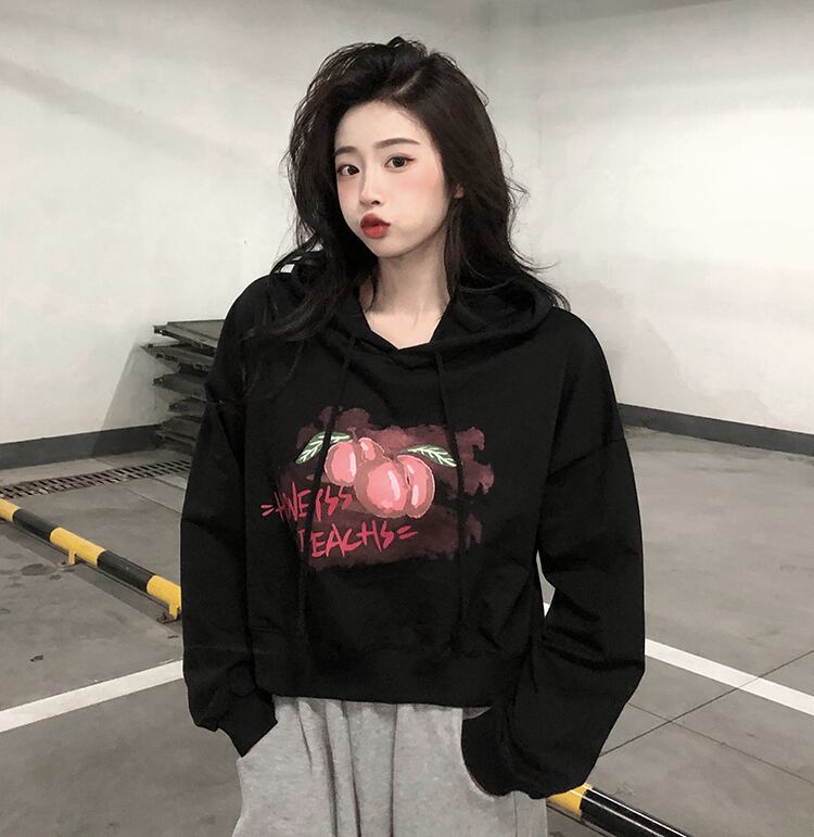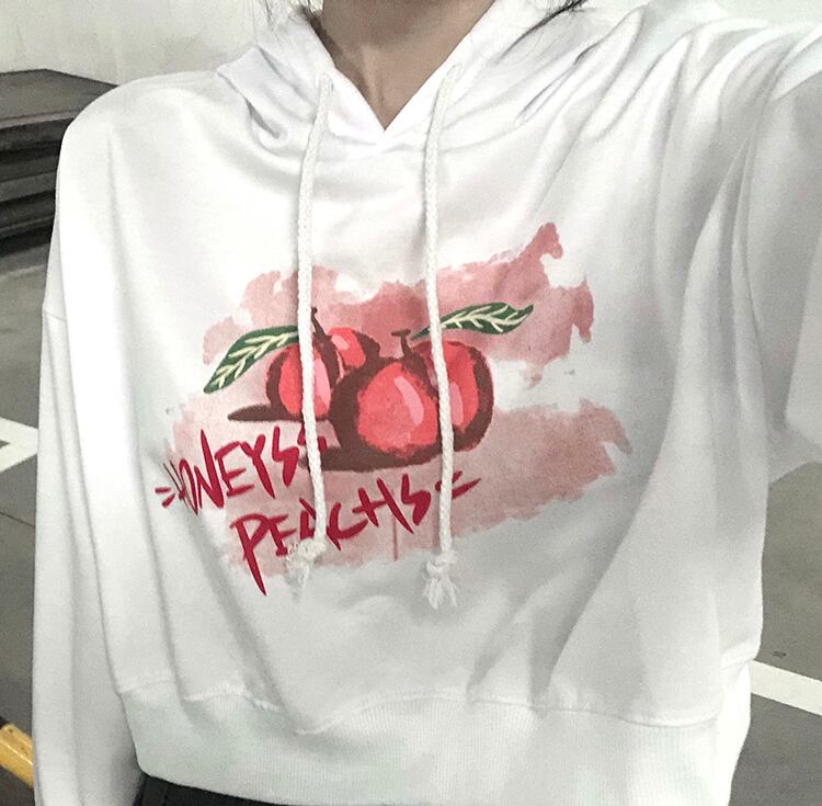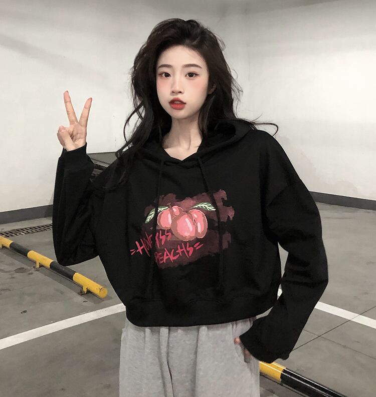 色:白い水彩の桃の短いセーター,黒の水彩ピーチショートセーター