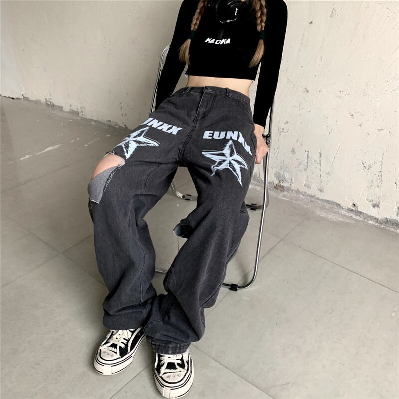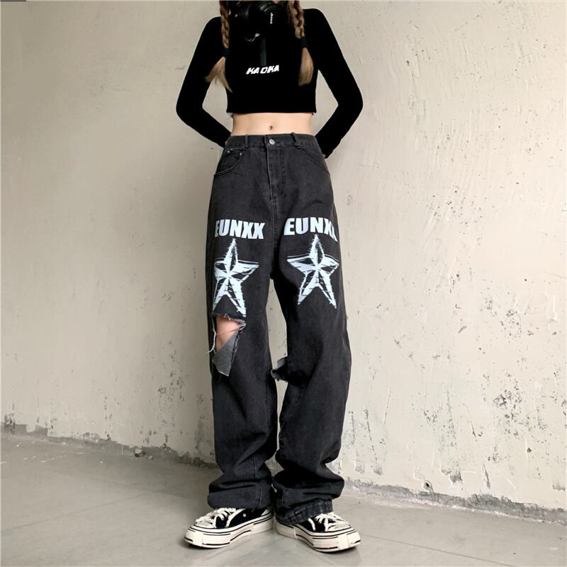 パンツ オータムスタンダードプリントジーンズ ルーズウェストワイドレッグ レトロ 秋物 ワイドパンツ Brother_is_Style89126914534