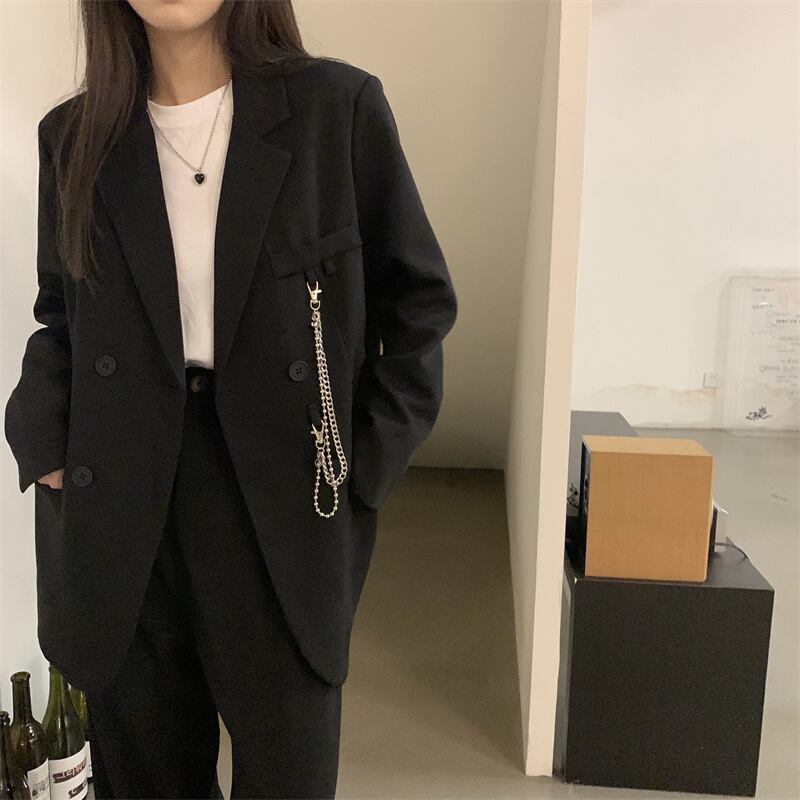 オータムスタイルチェーン ジャケット ルーズトップス ロング 秋物 Brother_is_Style3282712708