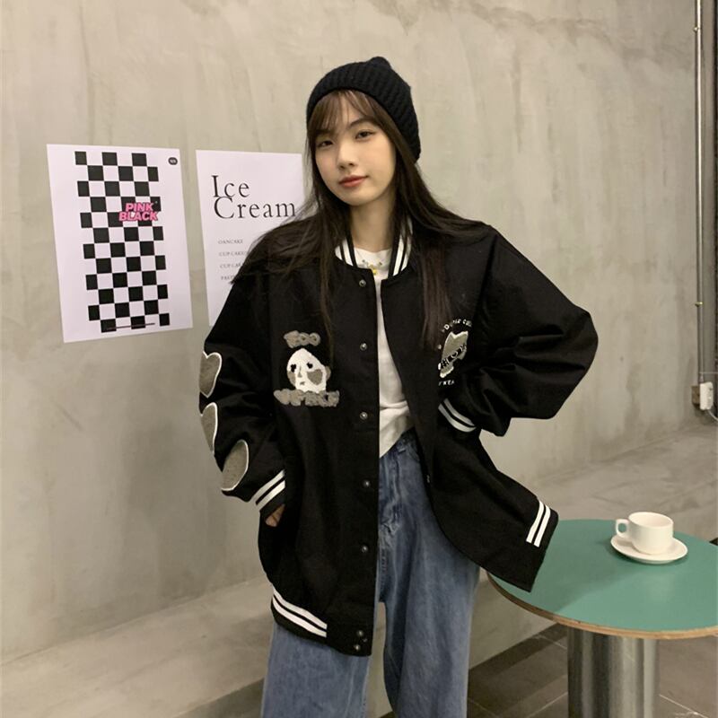 オータムスタイルブラックジャケット ルーズトップス レディース ロング 秋物 Brother_is_Style8130510236