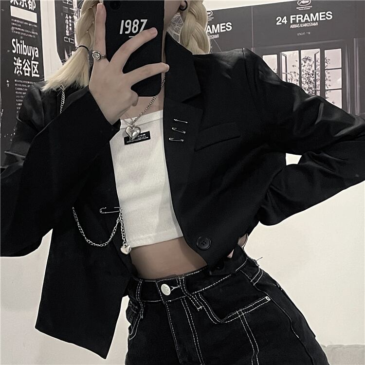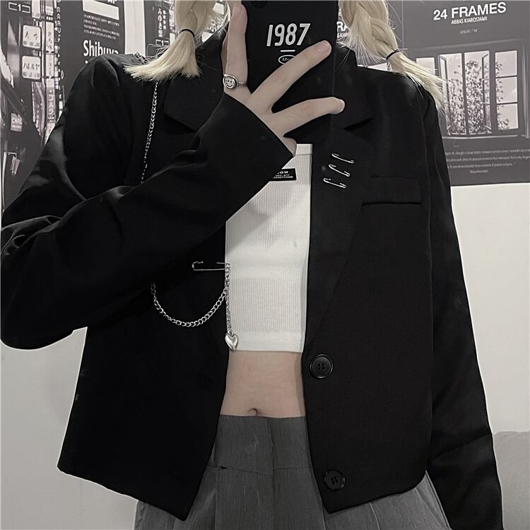 オータムスタイルショートブラックジャケット ルーズカジュアルレディース 秋物 Brother_is_Style83370562045
