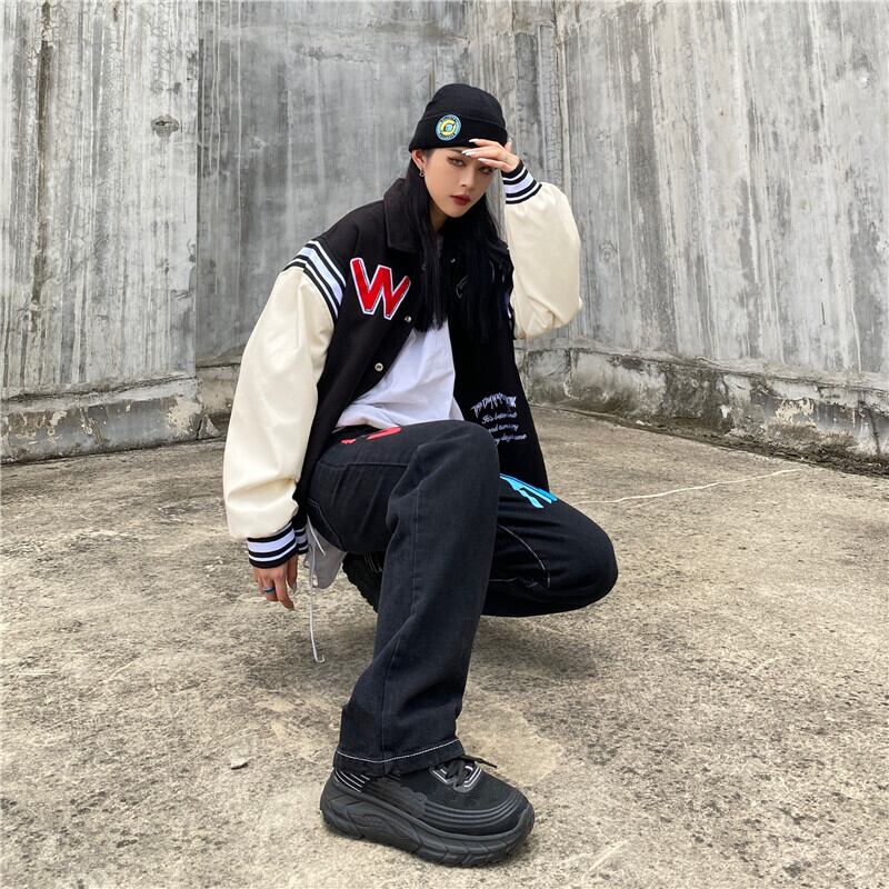 ダークスタイルプリントパンツ ルーズハイウェストジーンズ オータム かわいい 秋物 Brother_is_Style58694158638